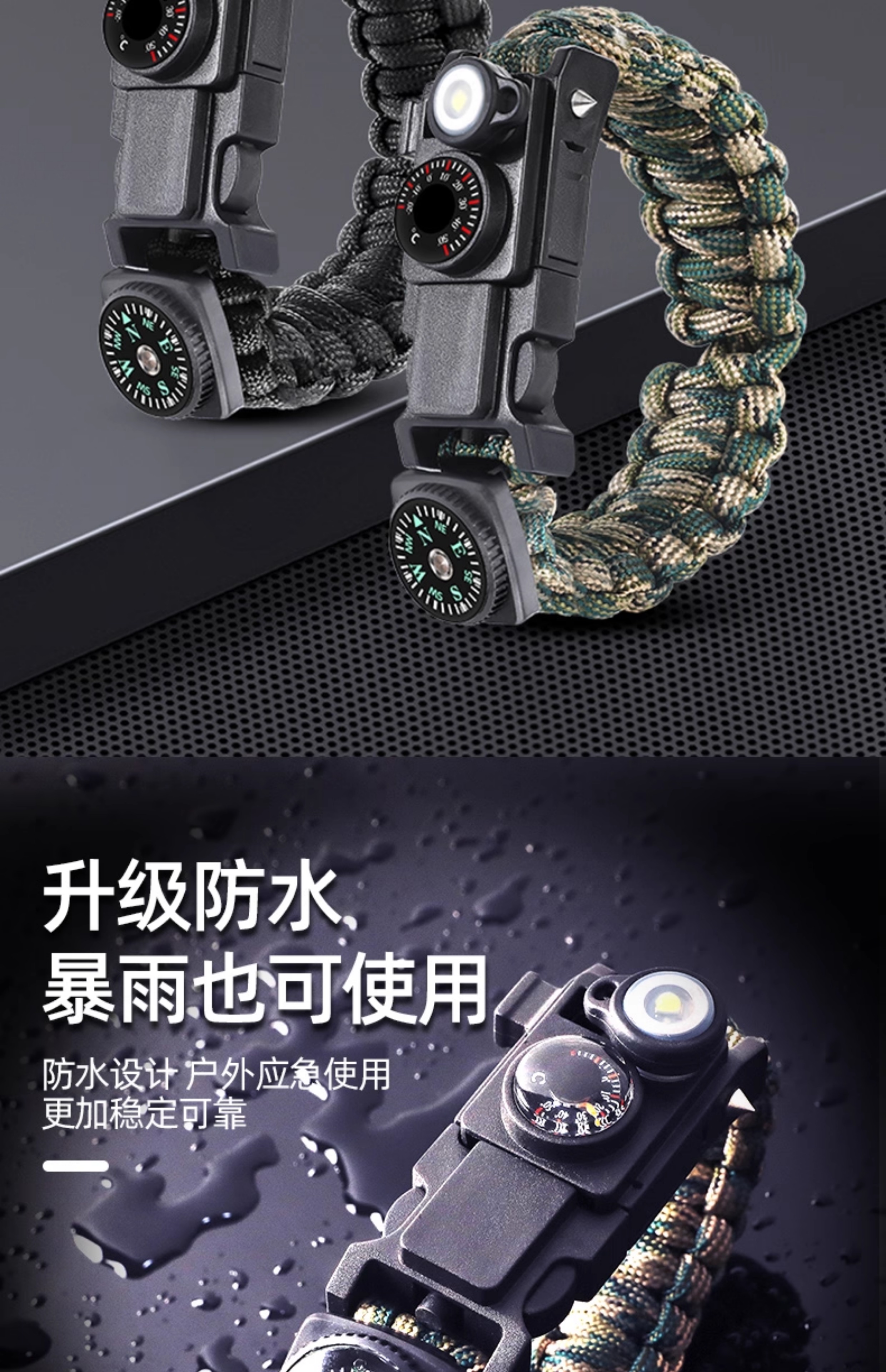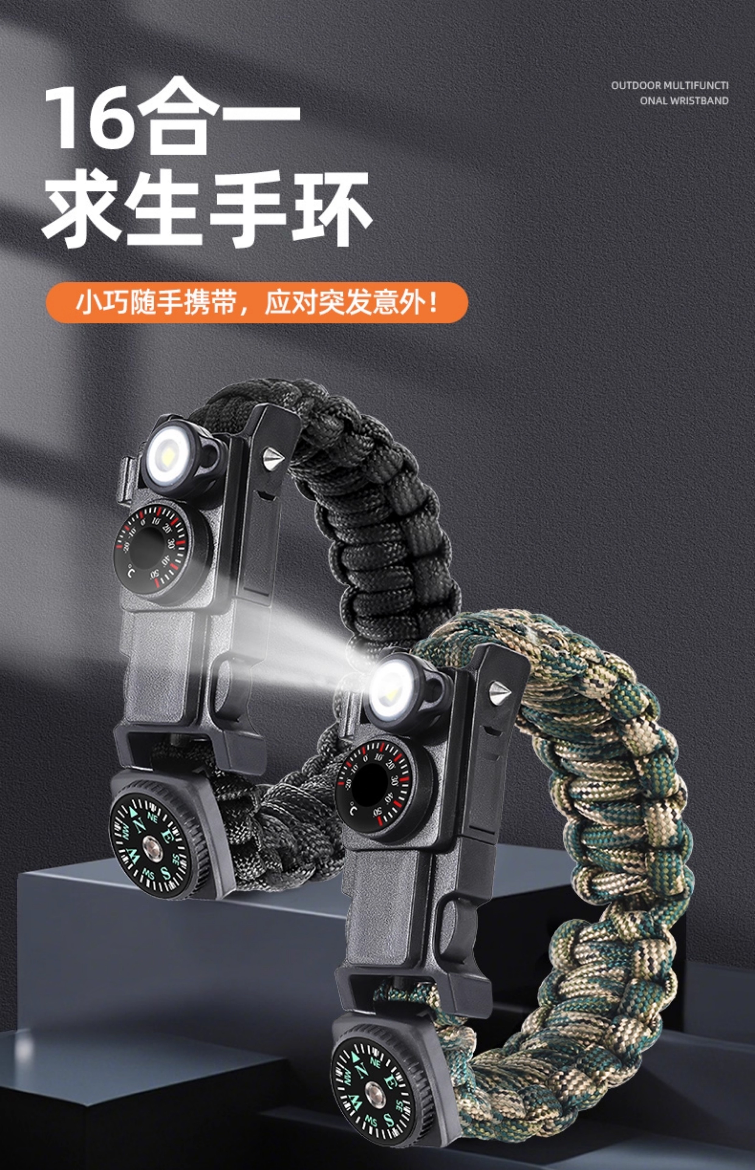 京牧辰16合一求生手环户外生存装备多功能手链编织伞绳野外探险 2个装 更实惠十六合一森野绿
