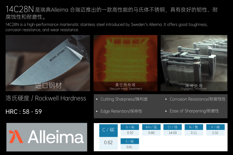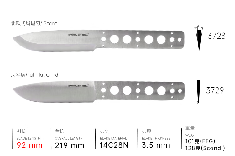 锐狮帝Realsteel Bushcraft Scandi/FFG 户外 刀 丛林 龙骨 刀胚 14C28N 大平磨