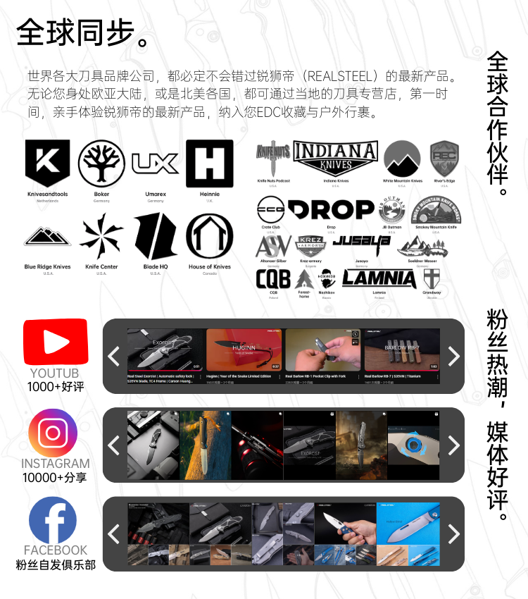 锐狮帝Real Steel《DEX M390》战术风EDC 可拆柄 粉末钢 小直 刀 碳纤柄 白色G10嵌片/碳碎框架
