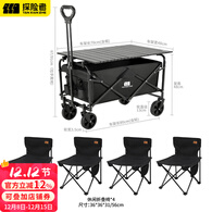 探险者露营车户外折叠推车营地车快递摆摊野餐车大容量野营拖车 【黑色升级款160L+桌板+折叠椅*4】