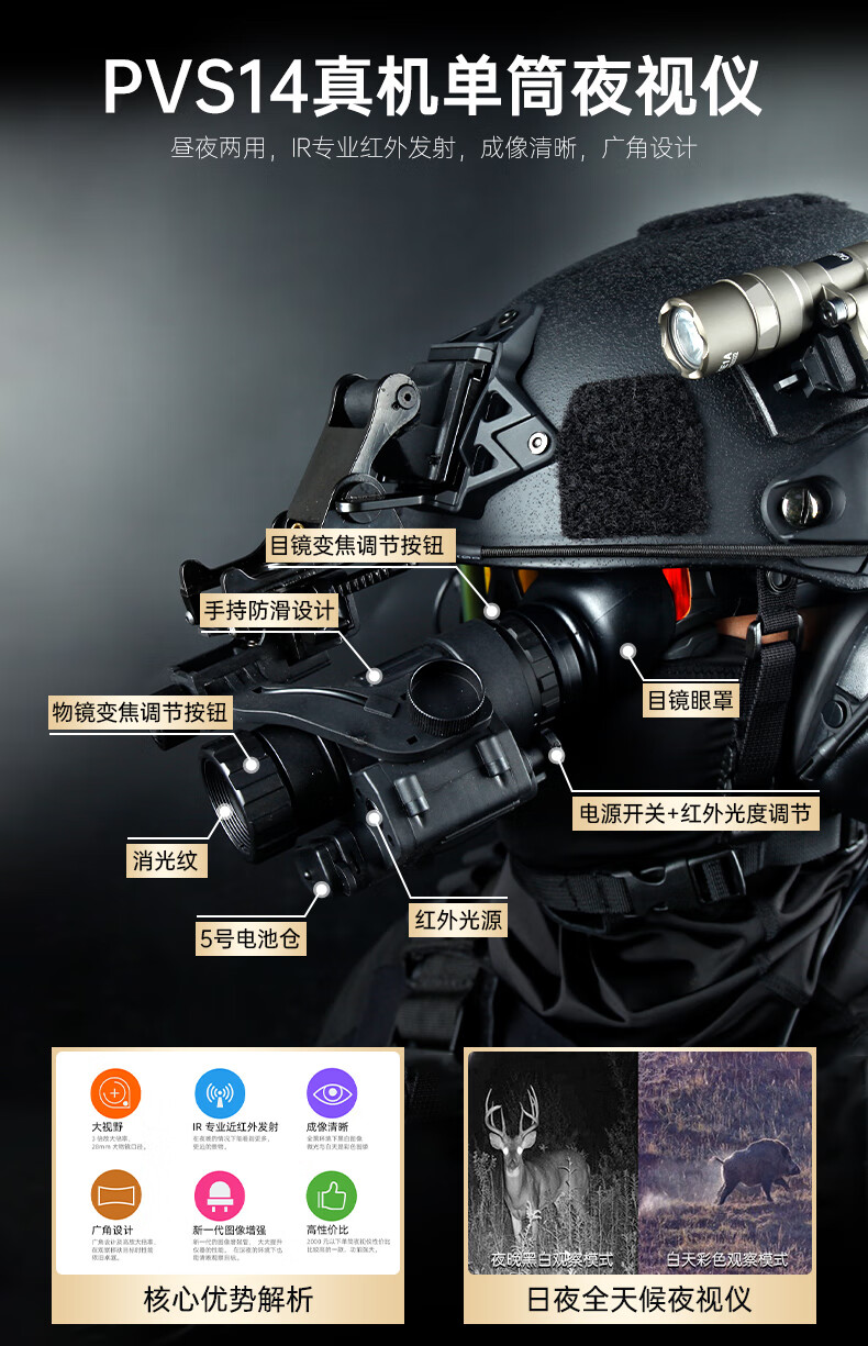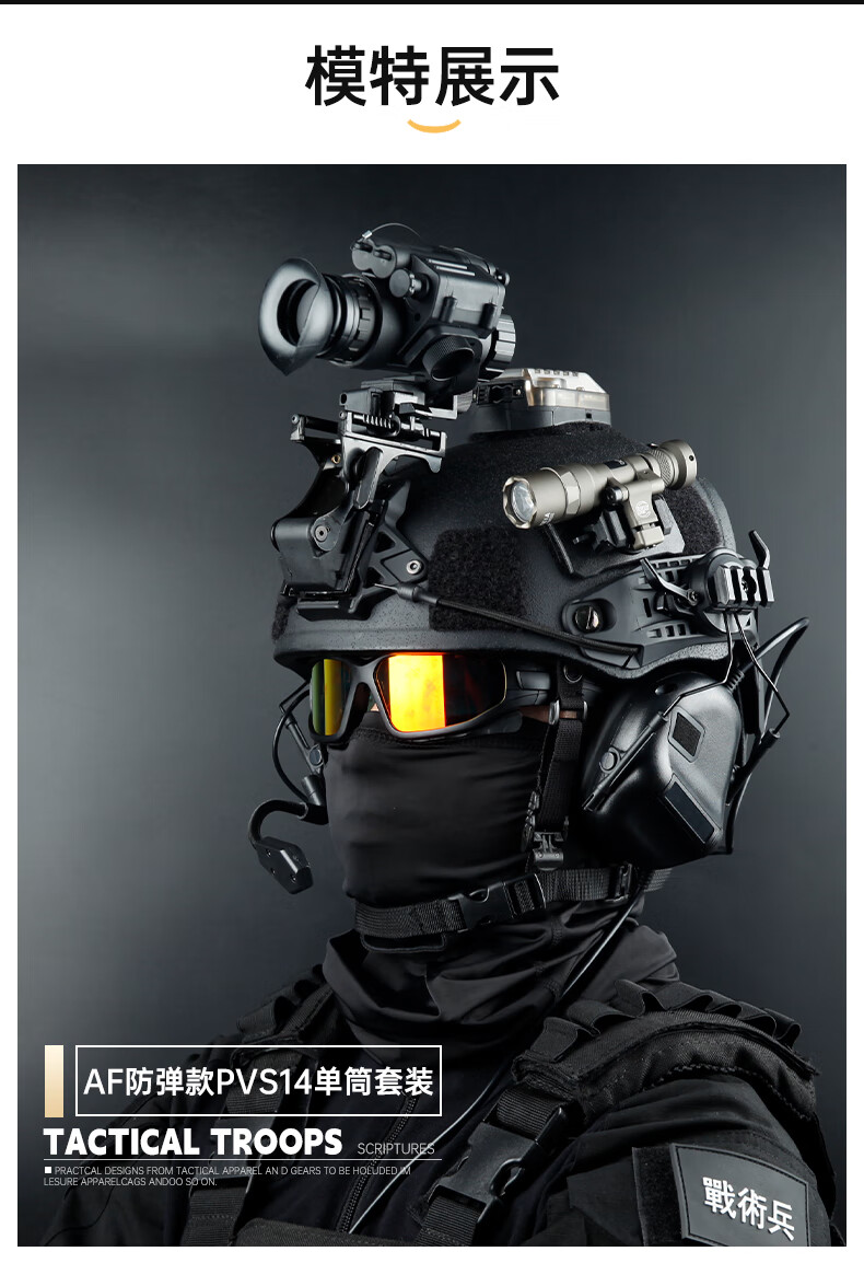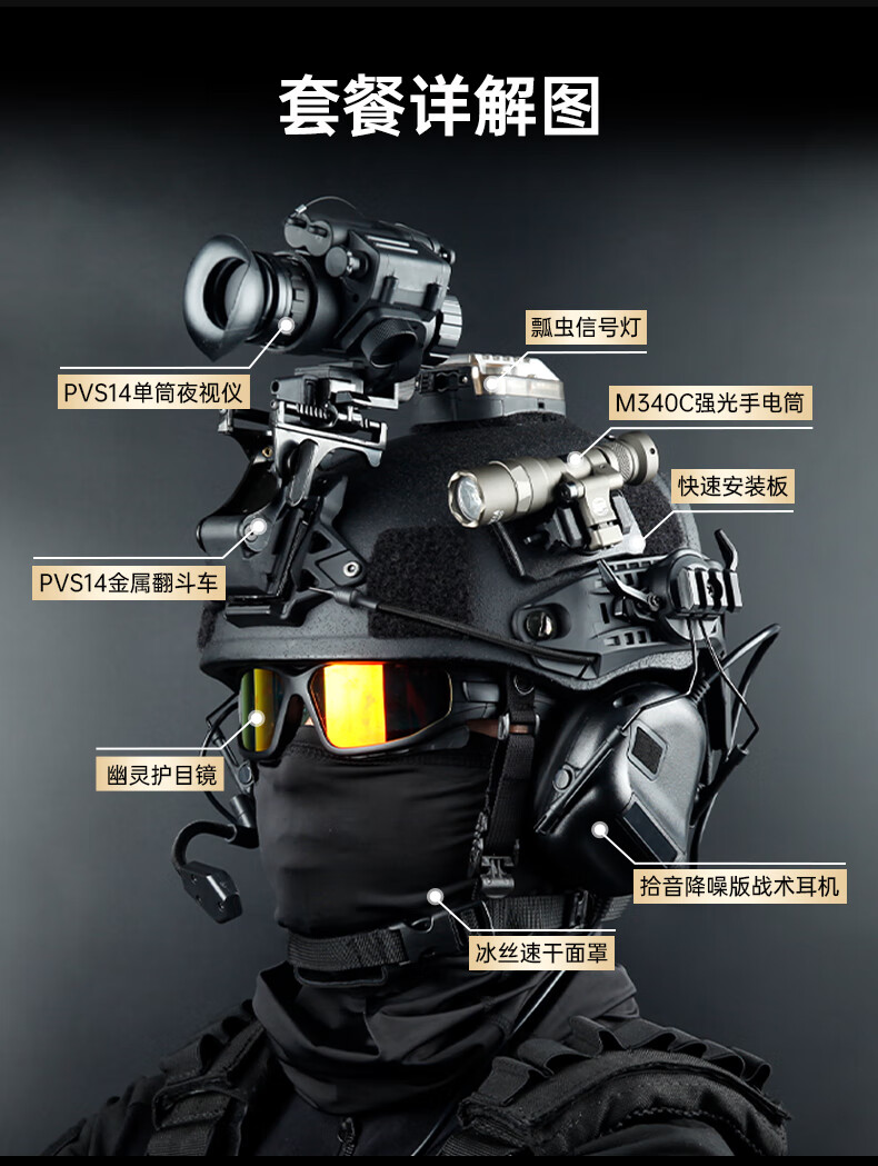 战术Fast头盔单双目四筒夜视仪模型海基多维分体全套装备道具 黑色套装8*成人款(儿童款拍下备