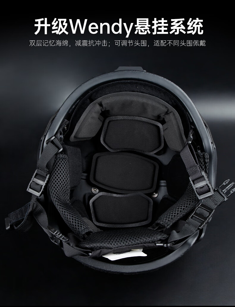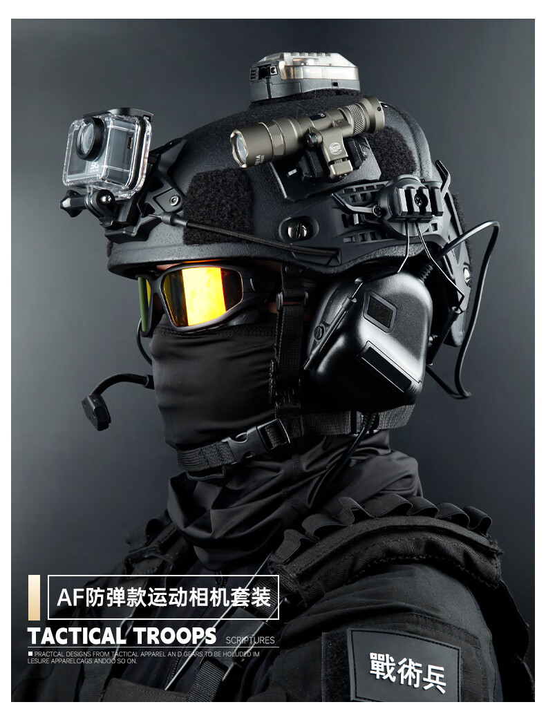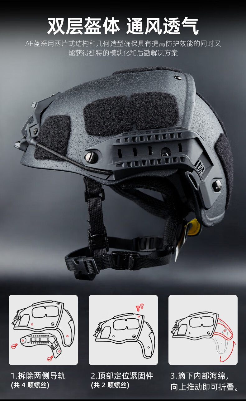 战术兵美式双层AirFrame防弹盔AF重型战斗防弹战术头盔多功能装载防护盔 黑色E套装