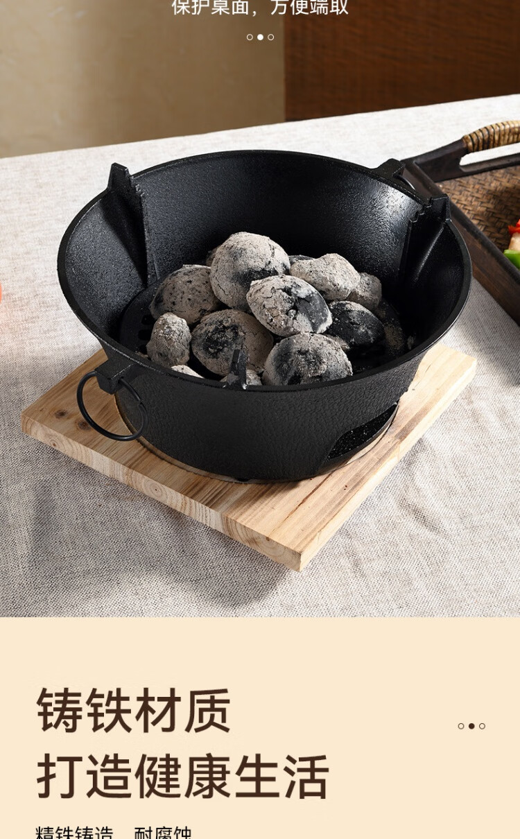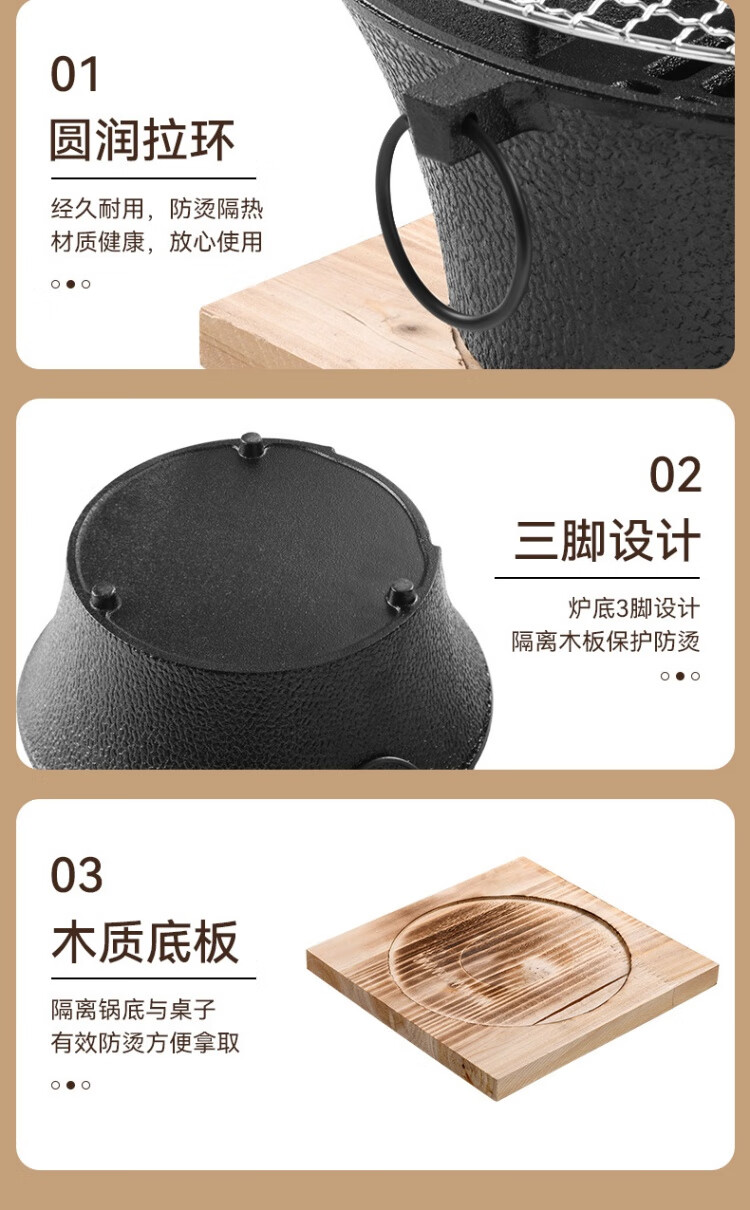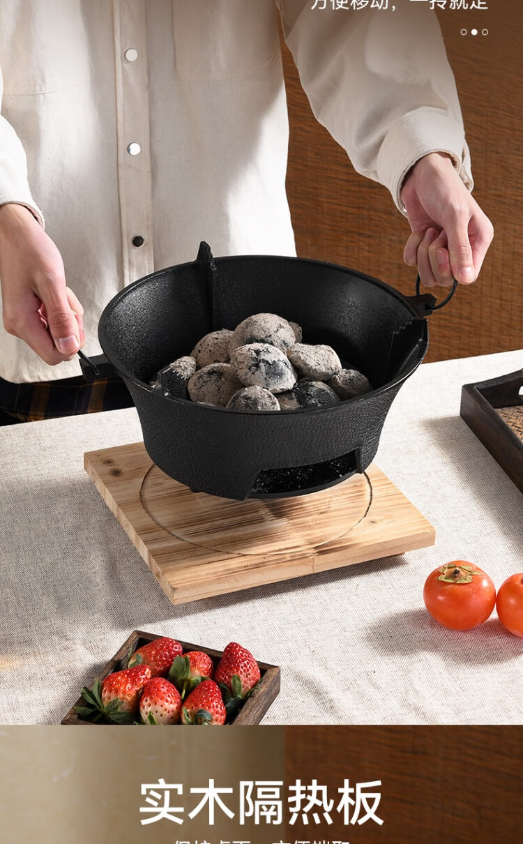 北极狼围炉煮茶家用庭院室内烤火盆煮茶烧水冬季户外露营烧烤取暖 59cm围炉5斤碳5件套