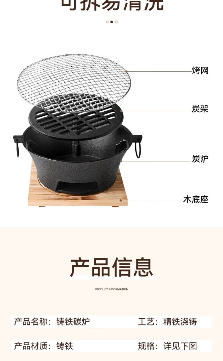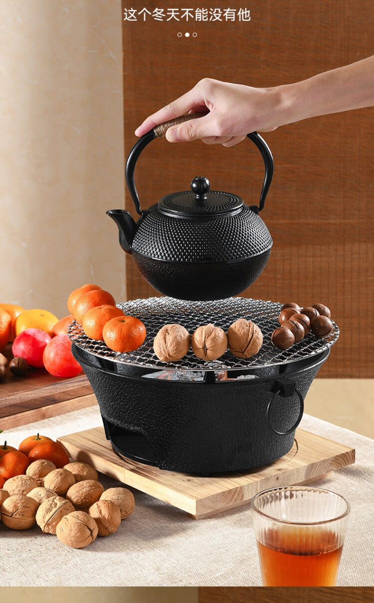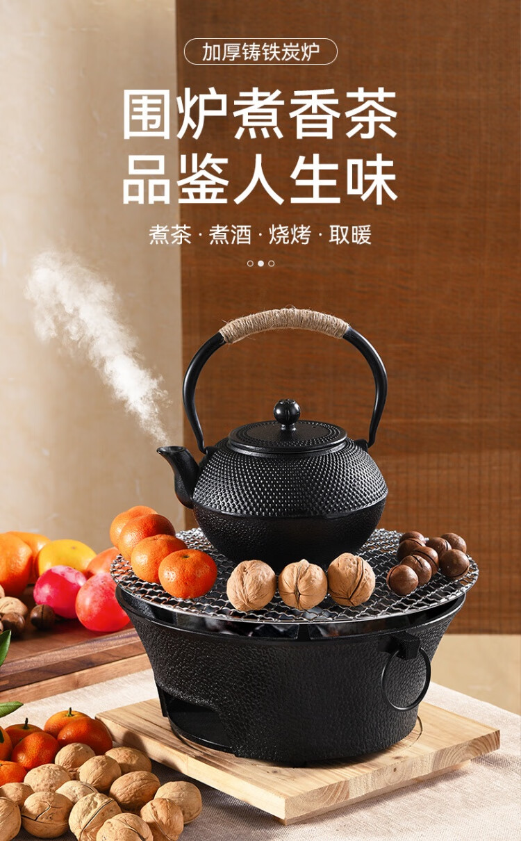 元族围炉煮茶套装铸铁烧烤炉户外碳烤炉室内煮茶器具围炉煮茶壶木炭 中号 23cm碳炉+加粗烤网