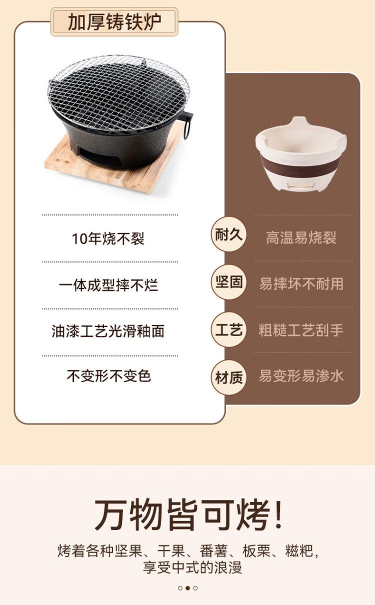 围炉煮茶烤火炉套装器具全套2025新款烧烤炉子家用烤肉室内户外 【烧烤套餐 】黑色围炉+烤网+烤盘 送5斤碳