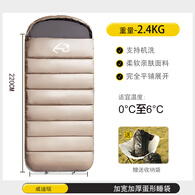 威迪瑞睡袋成人户外露营大人冬季加宽加厚防寒男被子两用单人四季通用款 2.4KG卡其【加宽100cm】