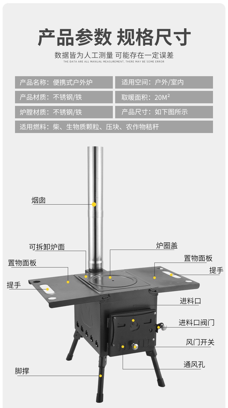 凰一 户外露营取暖帐篷炉野营柴火炉 自驾游烧烤炉庭院柴火灶便携方便