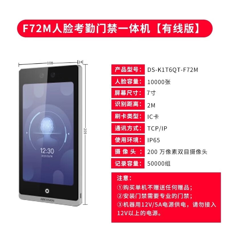 海康威视DS-K1T6QT-F72MW7寸人脸识别考勤办公门禁系统一体机套装手机开门 套装5适用于自动感应门 DS-K1T6QT-F72MW(WIFI版)