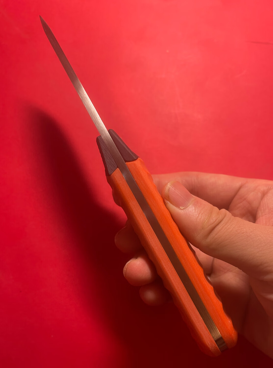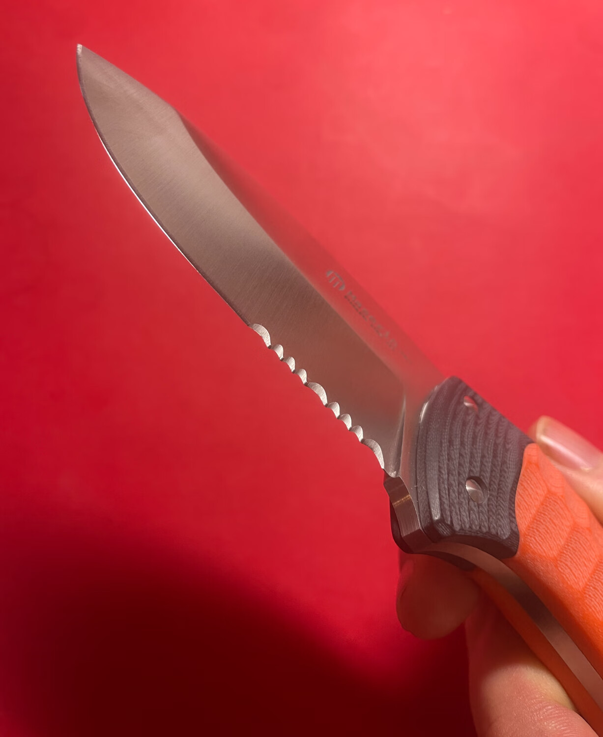 钢材:440C 不锈钢 柄材:G10 刃长:8.1厘米 全长:19.3厘米 刀身厚度:4.1毫米 配尼龙刀鞘