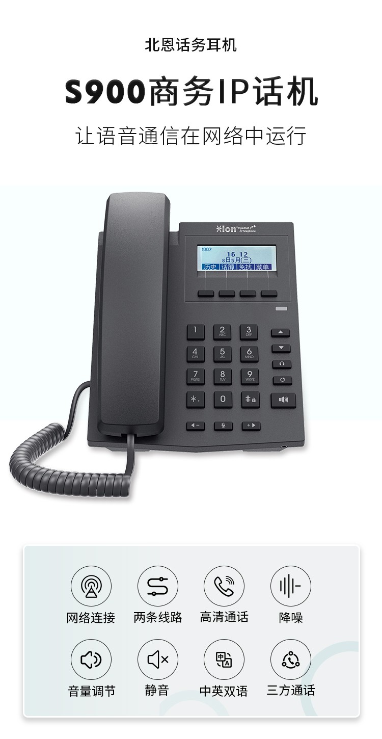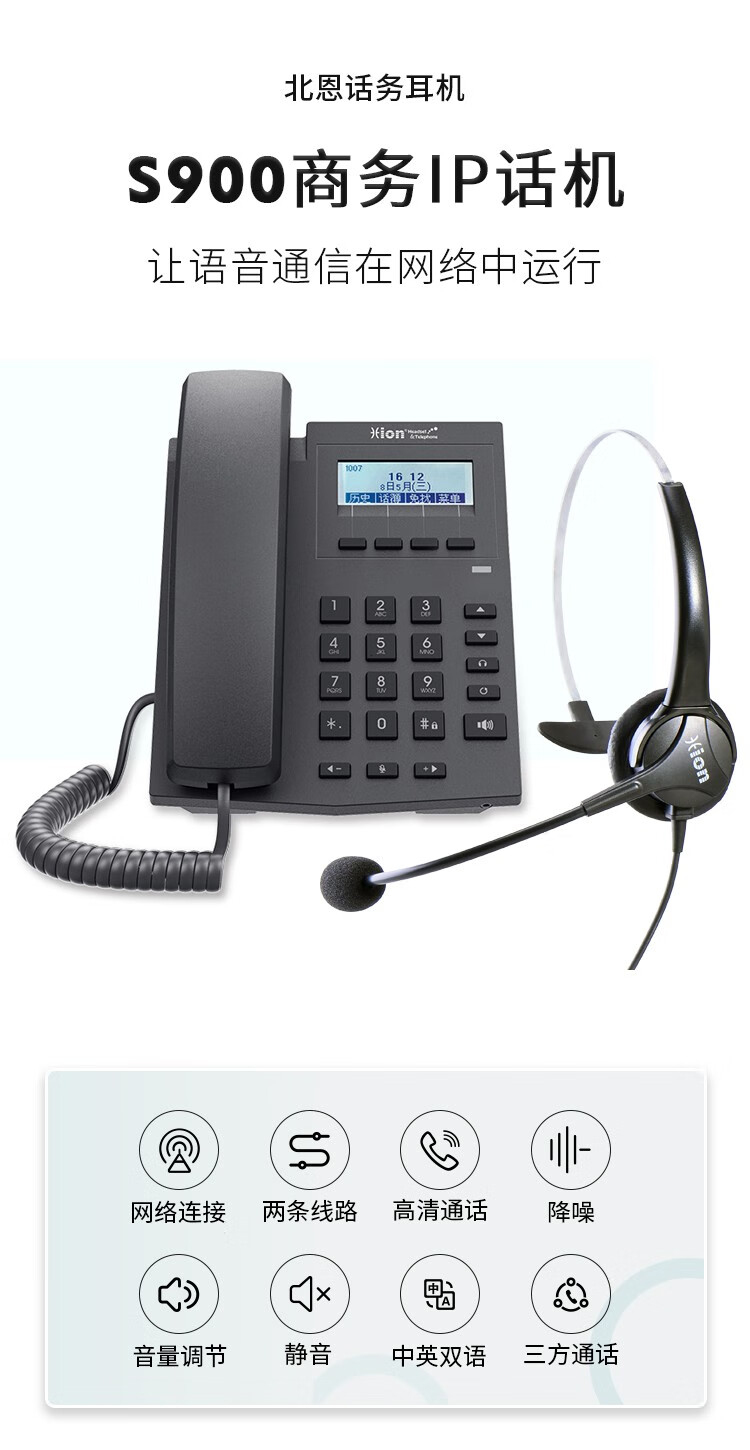 北恩(HION)S900 IP电话 SIP网络电话机 耳机话务机呼叫中心话务员客服座机 搭配FOR600单耳