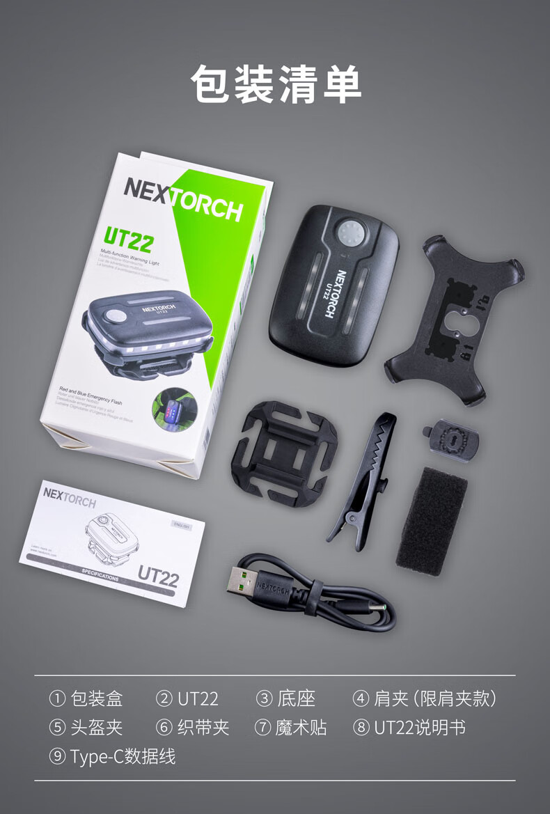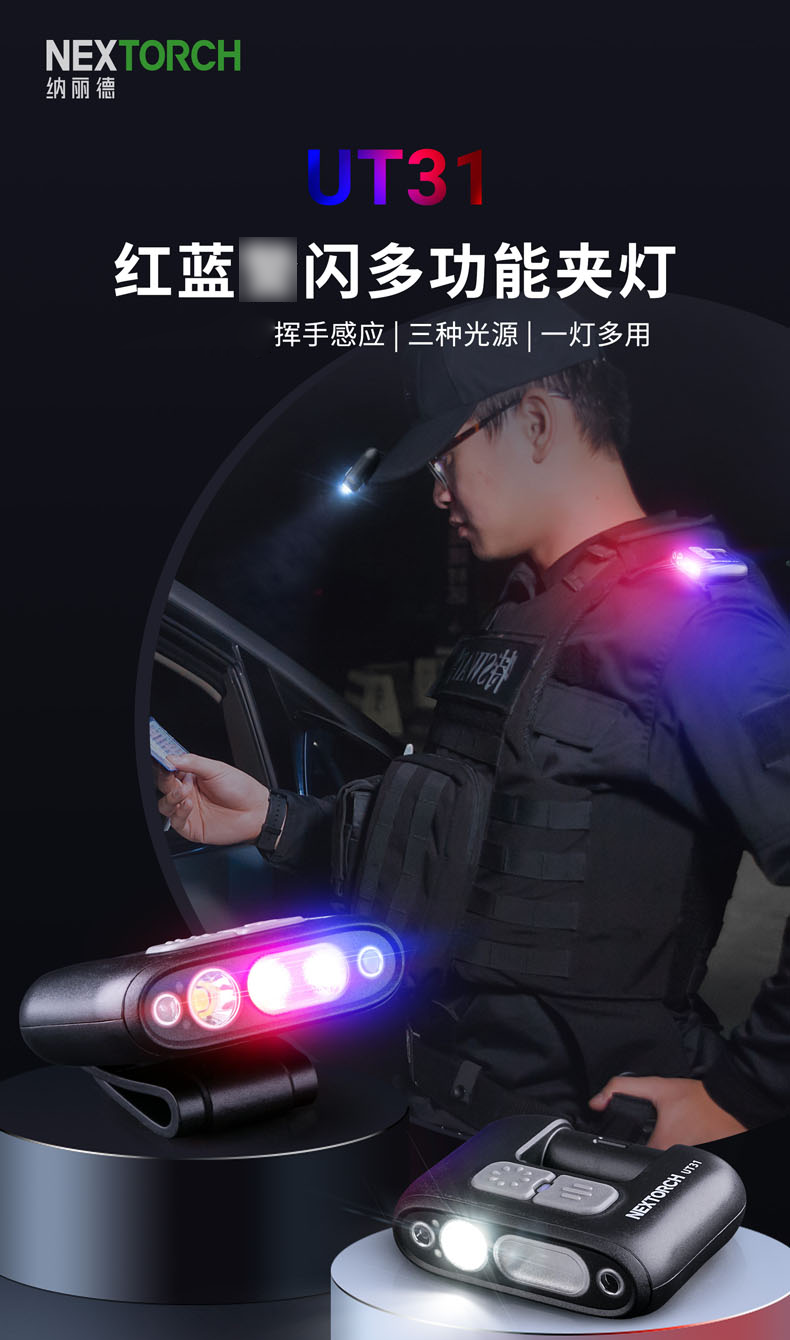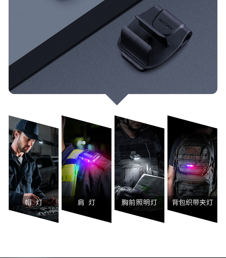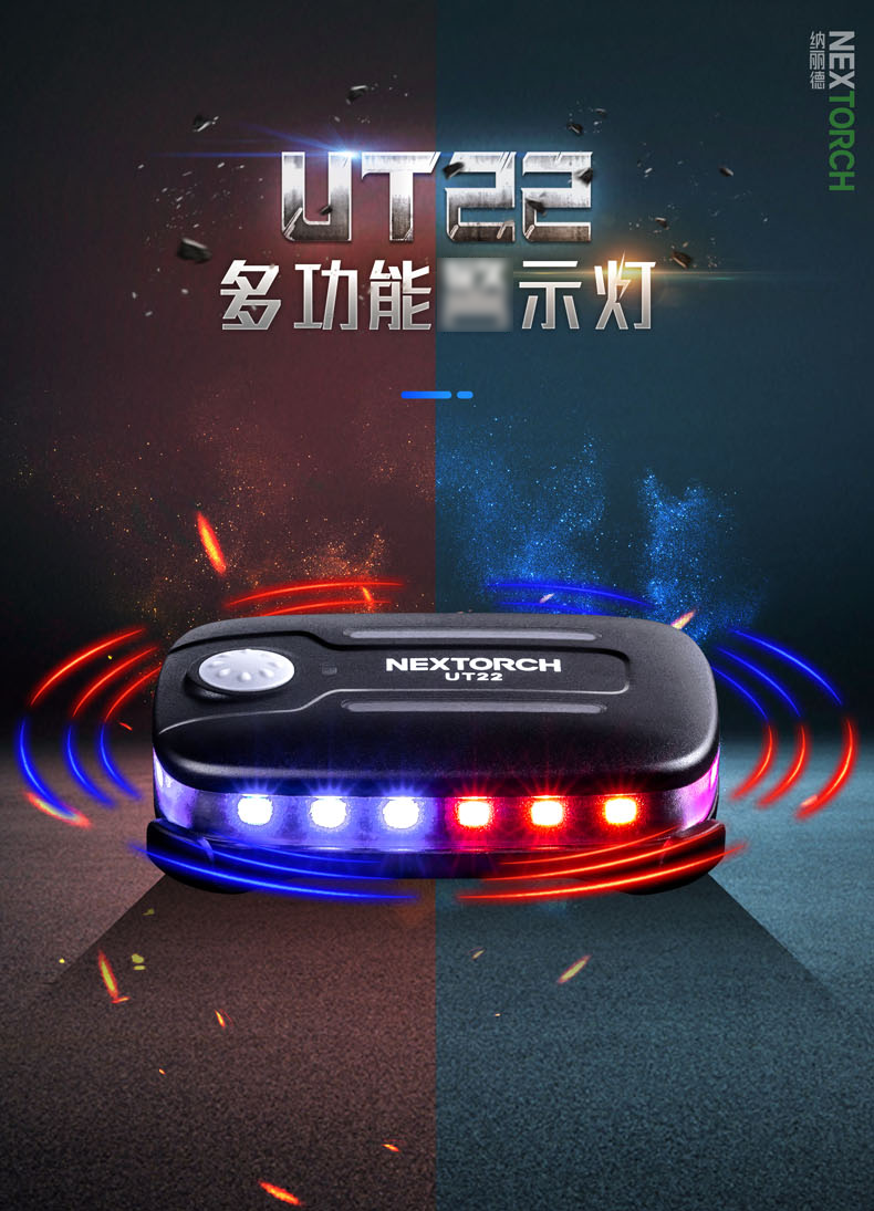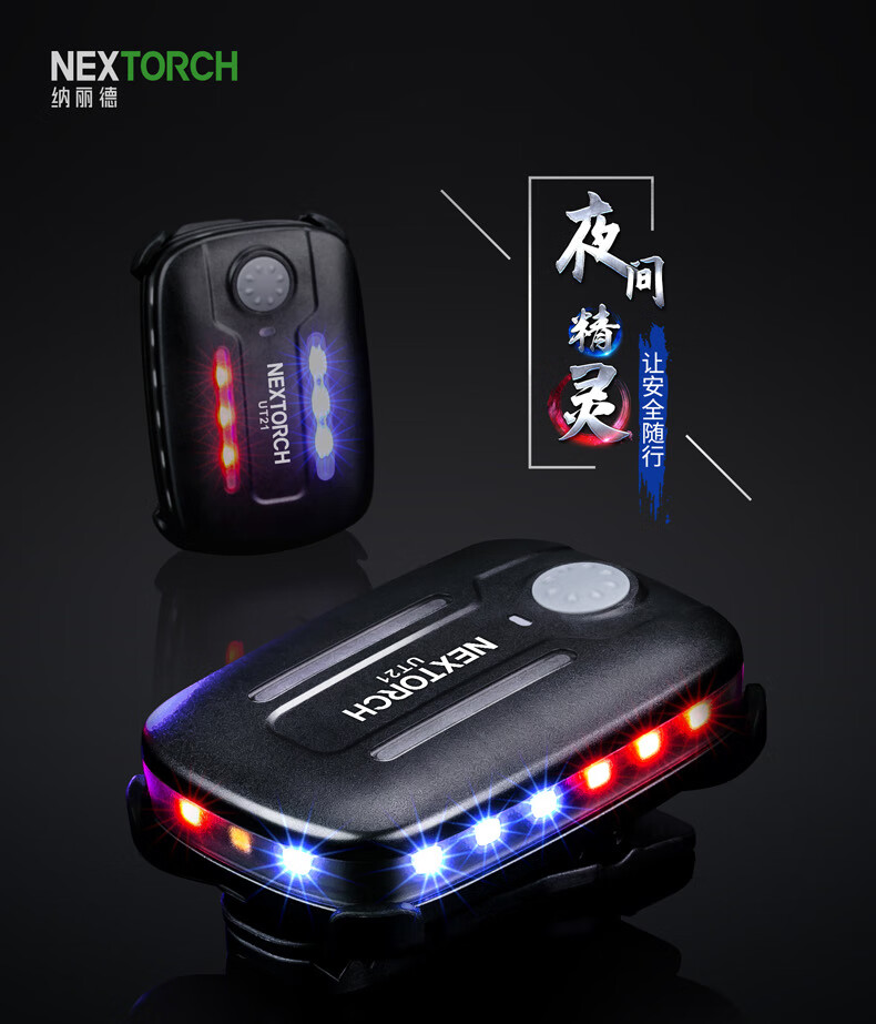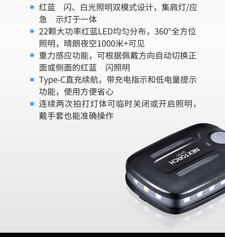 纳丽德(NEXTORCH)红蓝频闪肩灯UT21 UT22保安巡逻 LED信号灯感应灯帽夹灯充电 UT22含头盔夹+织带夹+魔术贴