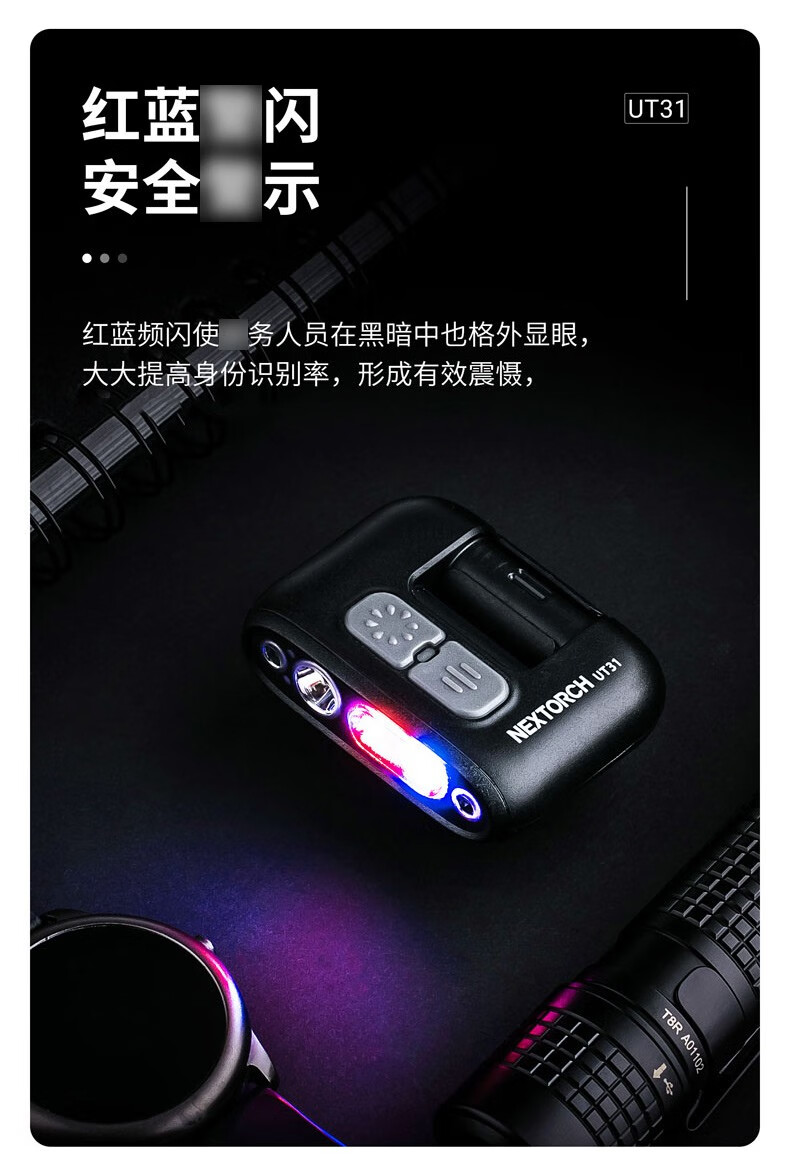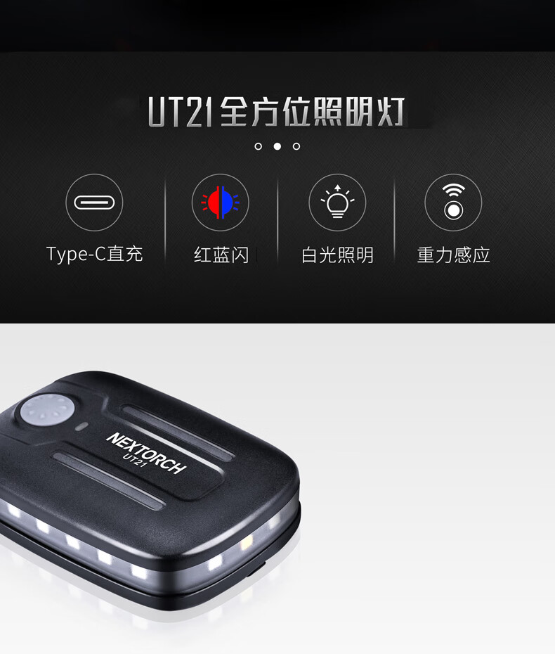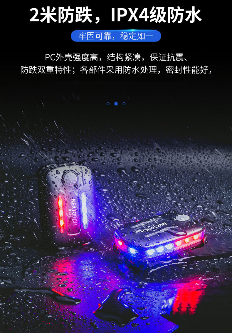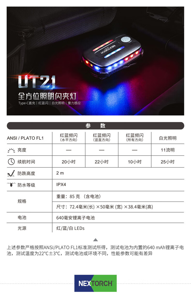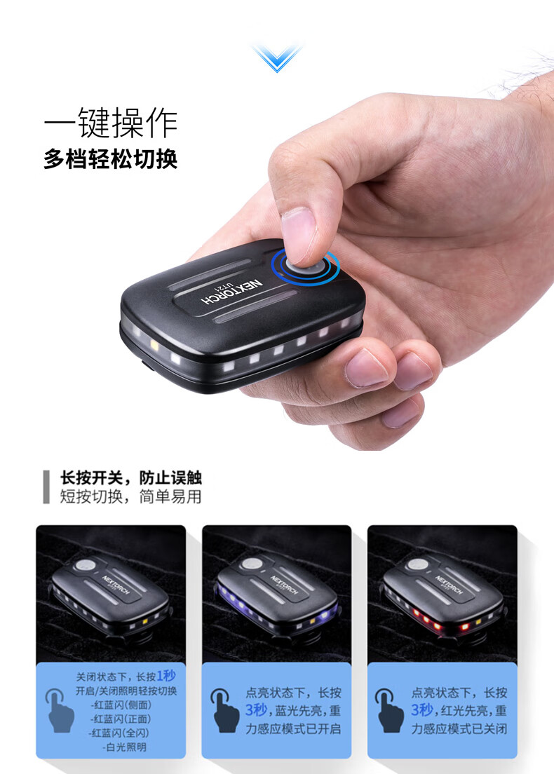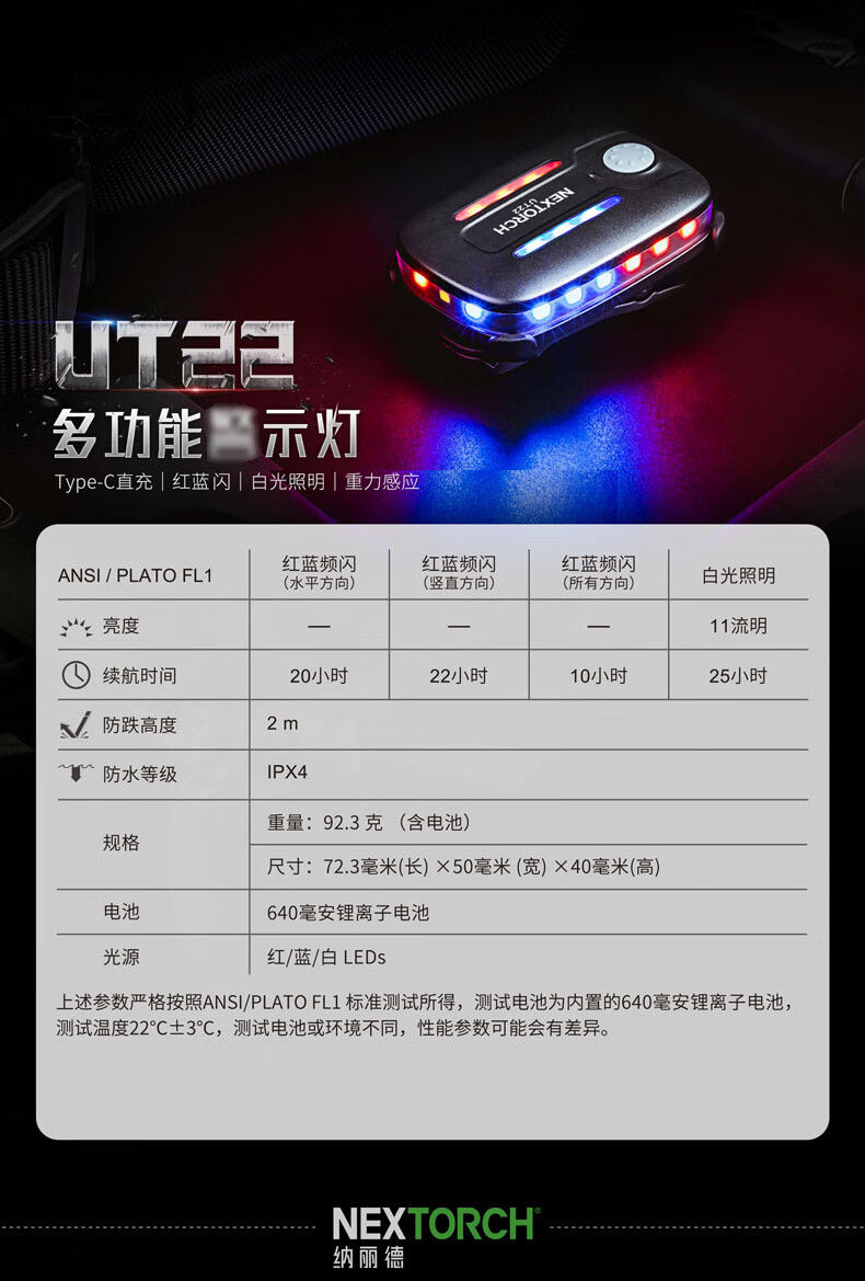 纳丽德(NEXTORCH)红蓝频闪肩灯UT21 UT22保安巡逻 LED信号灯感应灯帽夹灯充电 UT22含头盔夹+织带夹+魔术贴