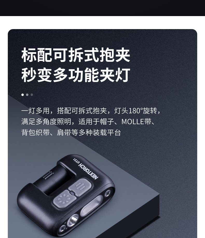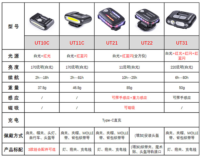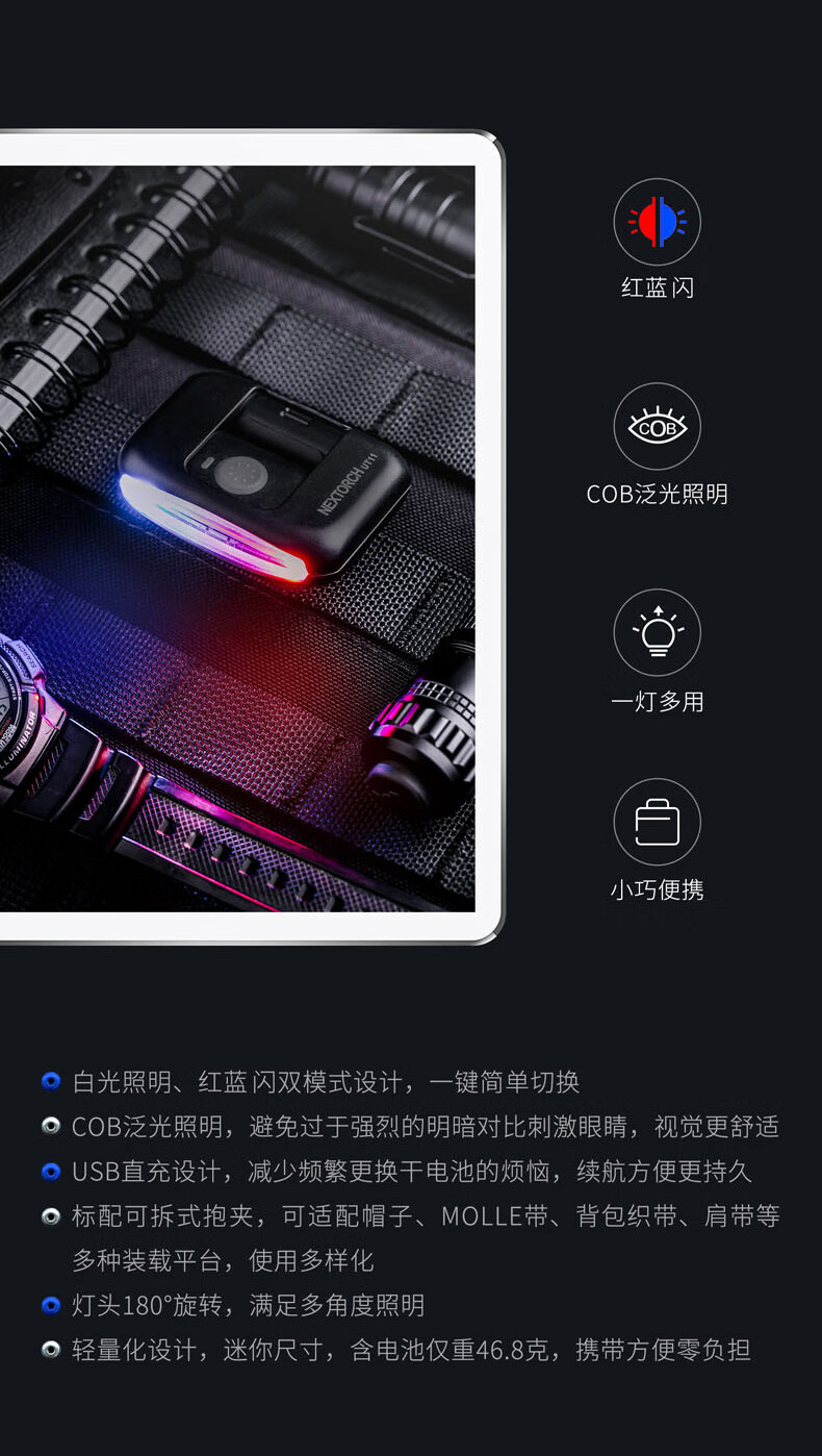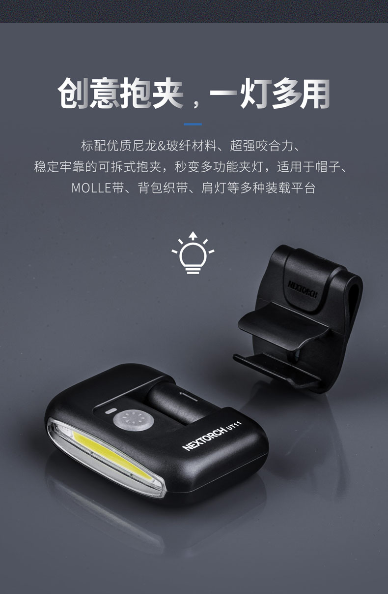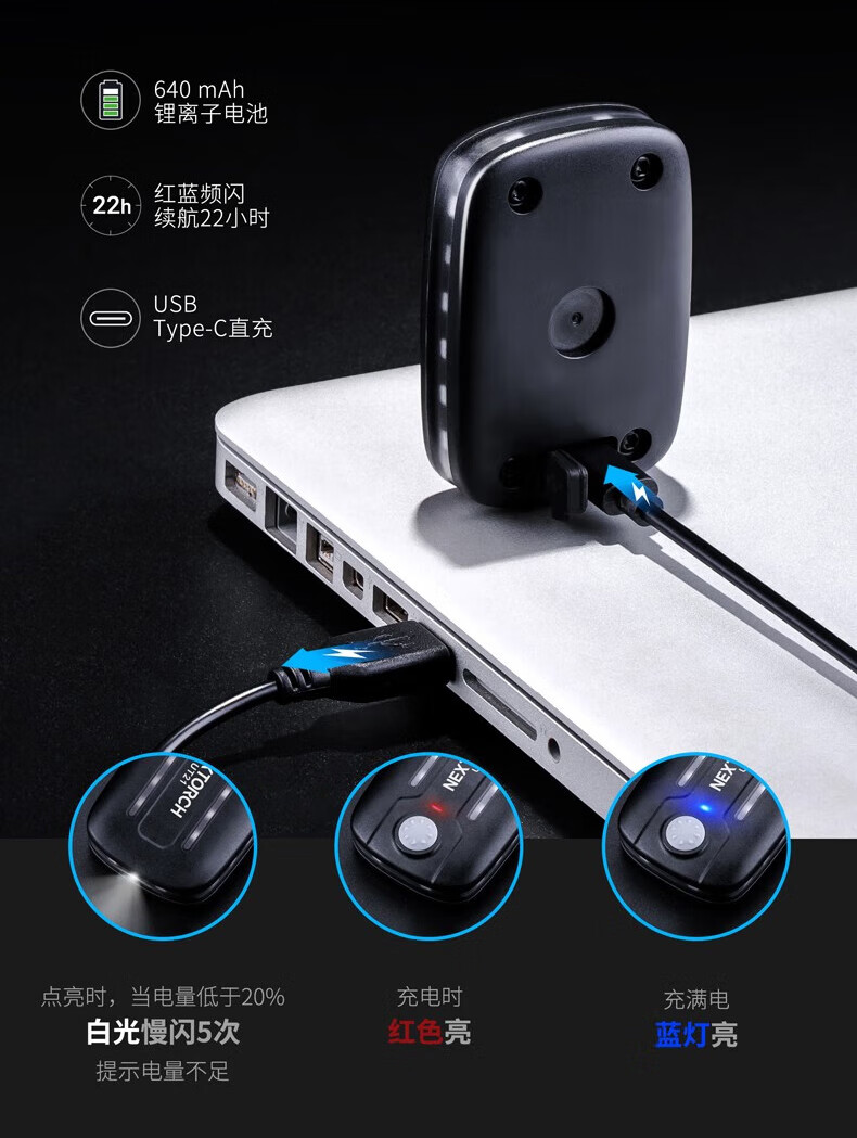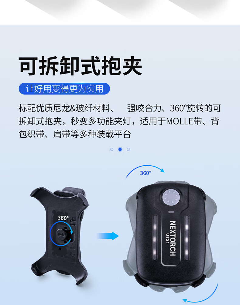 纳丽德(NEXTORCH)红蓝频闪肩灯UT21 UT22保安巡逻 LED信号灯感应灯帽夹灯充电 UT22含头盔夹+织带夹+魔术贴