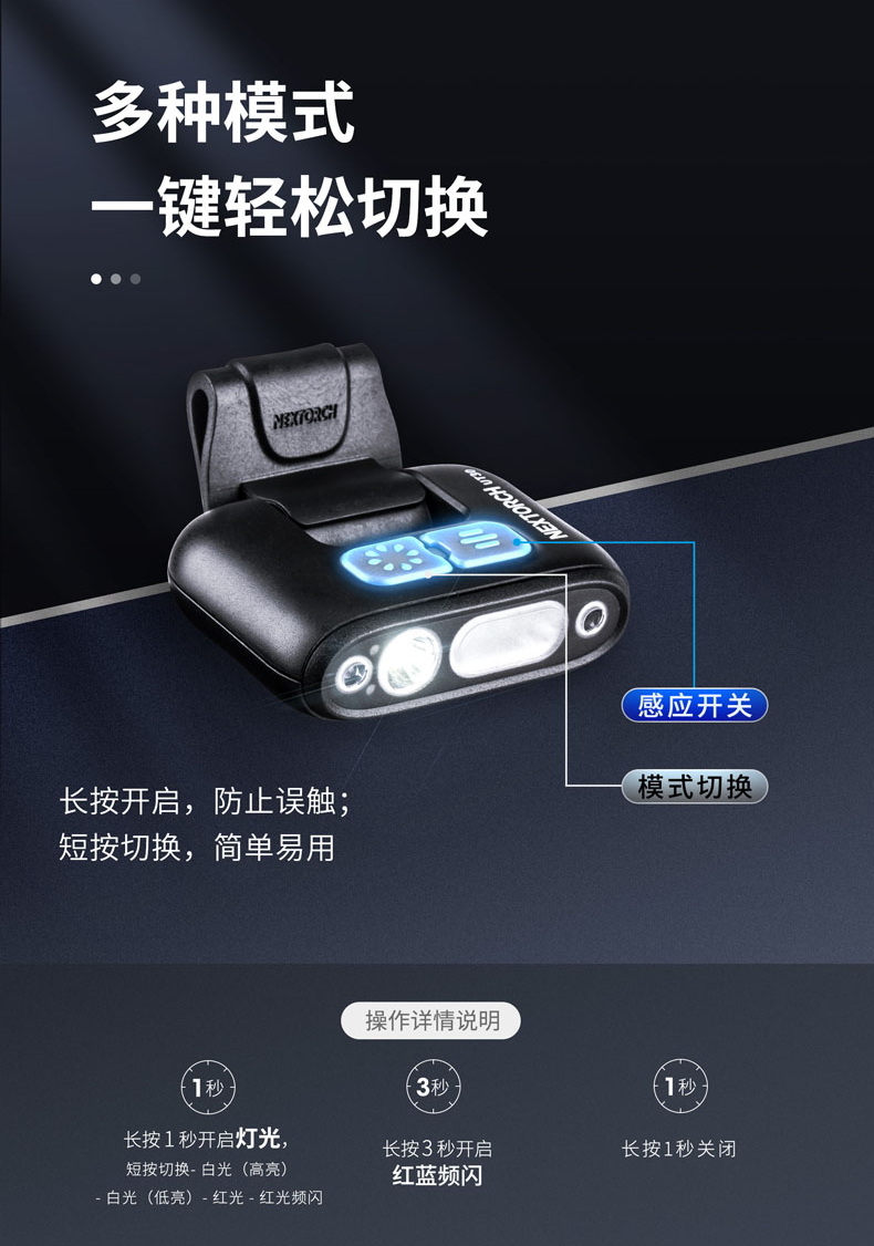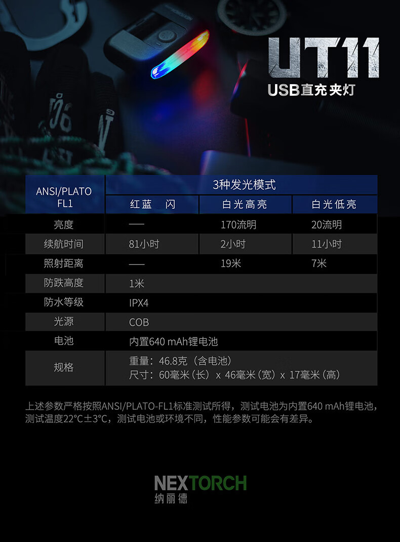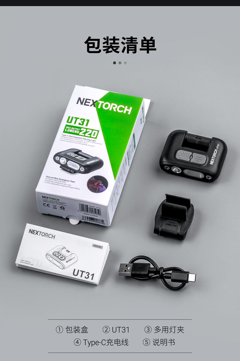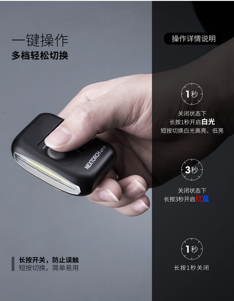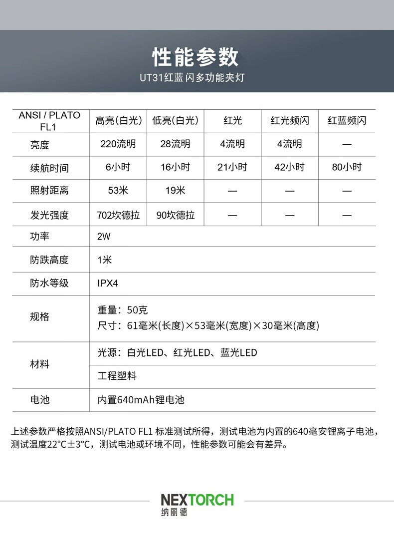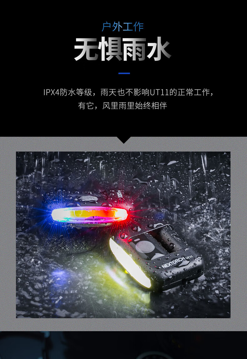 纳丽德(NEXTORCH)红蓝频闪肩灯UT21 UT22保安巡逻 LED信号灯感应灯帽夹灯充电 UT22含头盔夹+织带夹+魔术贴