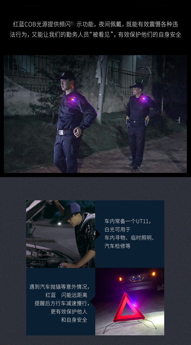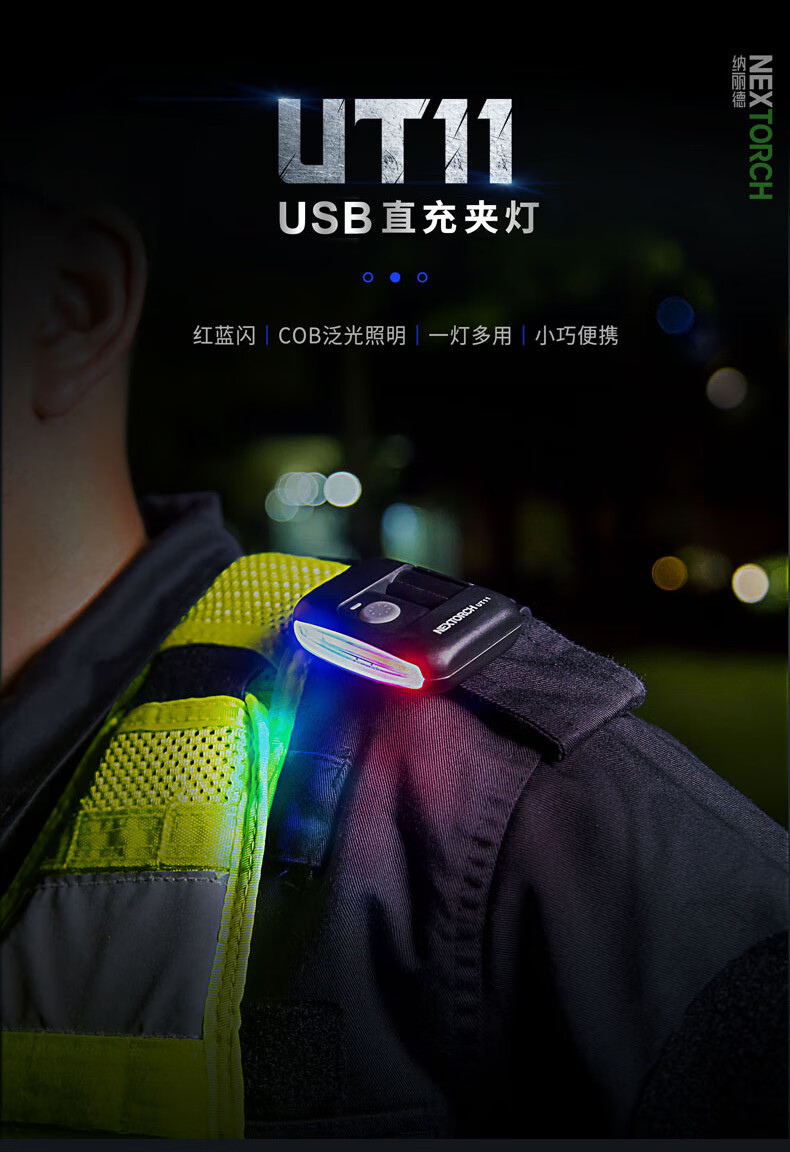纳丽德UT21/UT22 红蓝闪肩灯充电执勤保安巡逻灯帽灯夹 UT21(磁吸+肩夹)