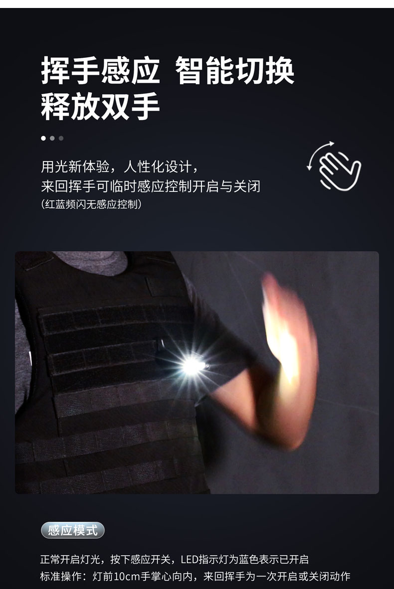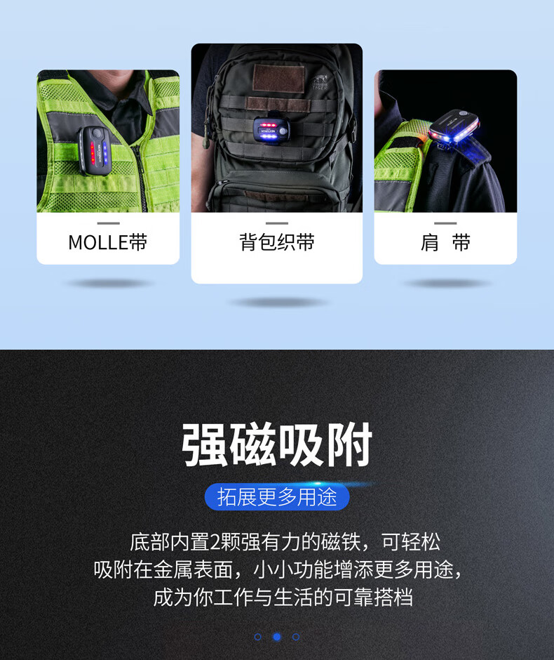 微笑鲨 led肩灯红蓝爆闪夜间巡逻多功能夹式救援信号灯闪光灯可充电 007【三光源警示灯】