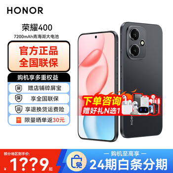 荣耀现货速发 畅玩60m手机AI一键直达6000mAh长续航超能大电池大字体老年学生备用高清相机 幻夜黑 12GB+256GB