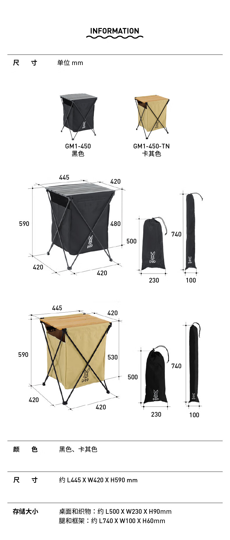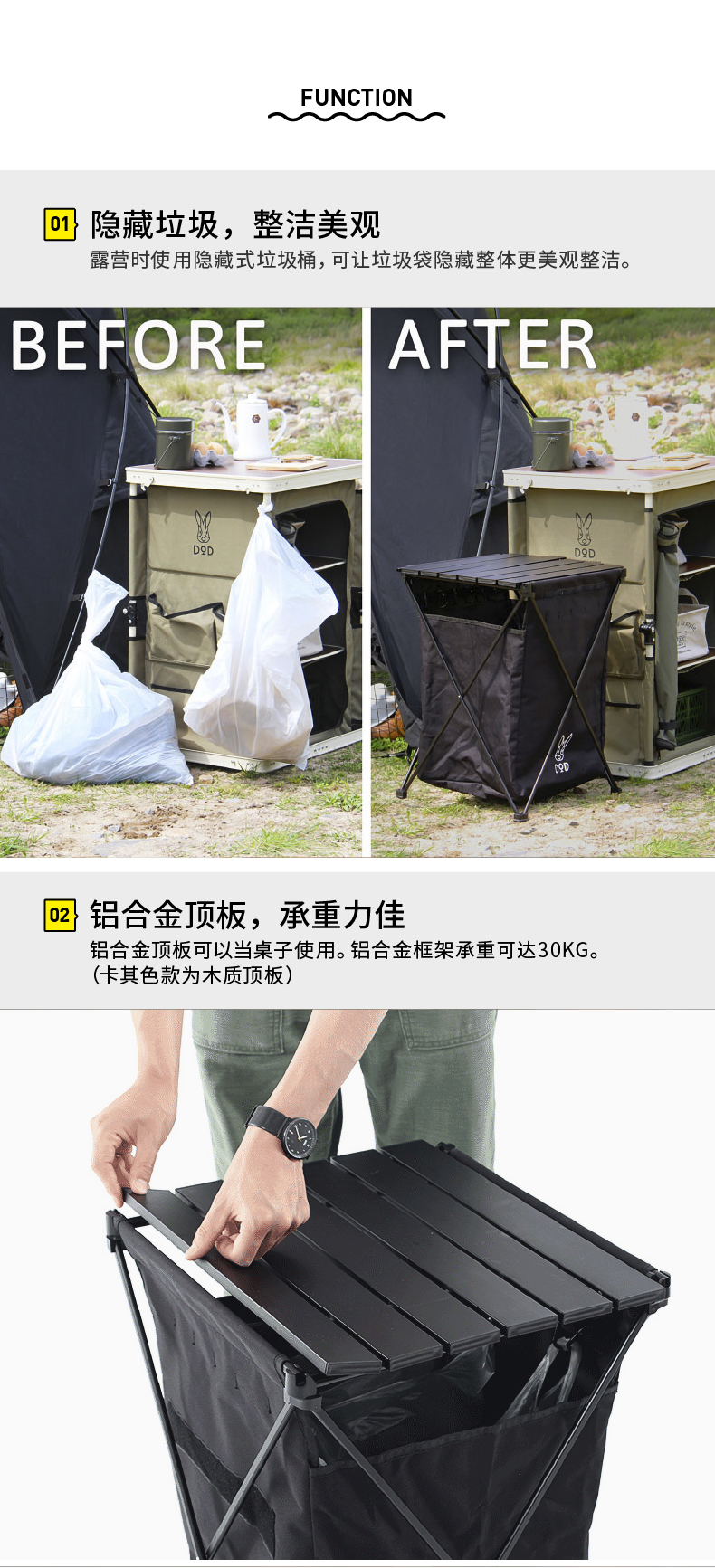 DOD 日本户外露营折叠储物多档调节高度多色多功能TB4-685KH收纳餐桌 军绿色TB4-685-KH