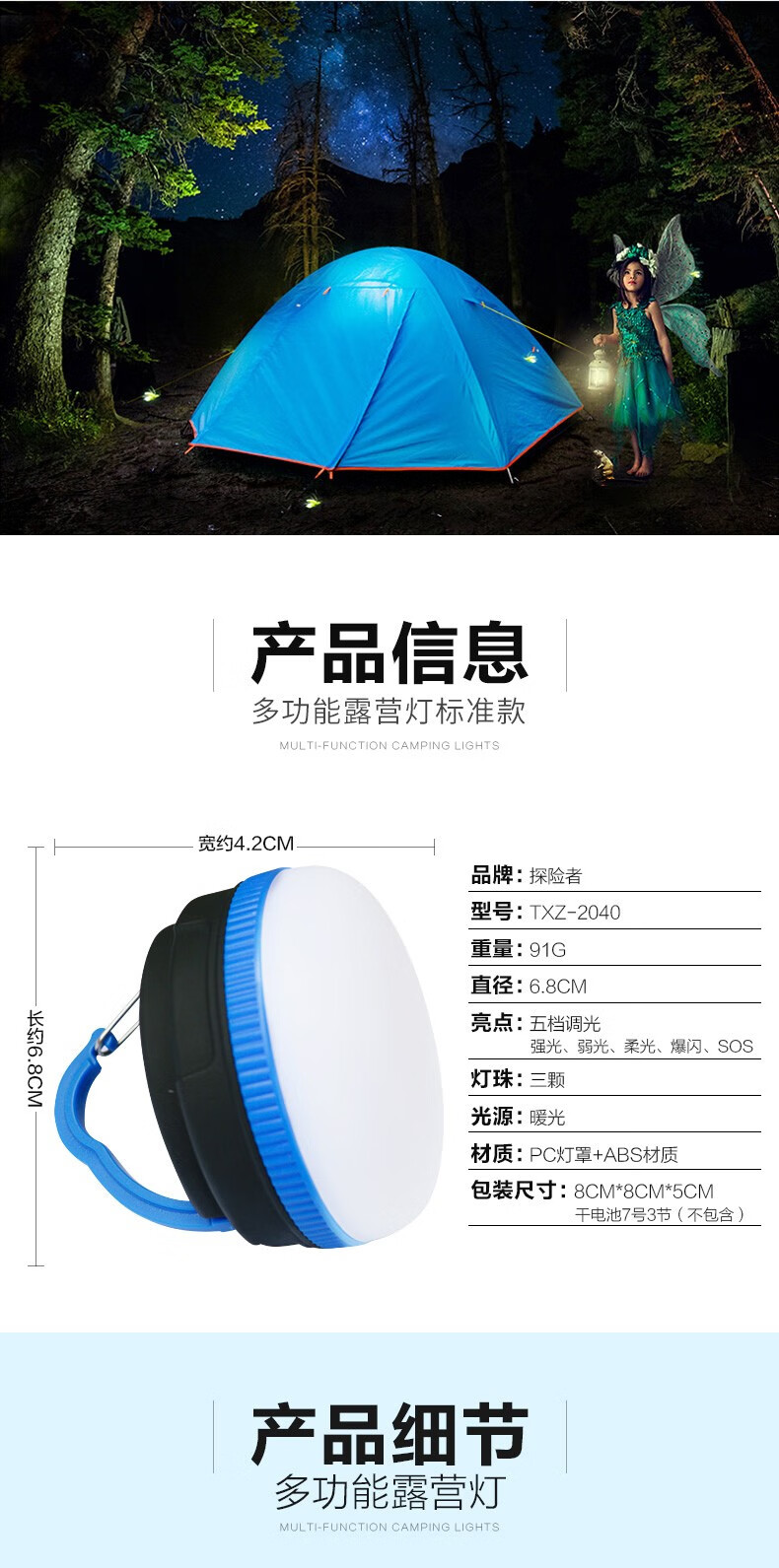探险者(TAN XIAN ZHE) 家用应急照明灯户外帐篷灯野营灯营地露营照明充电便捷灯 标准款