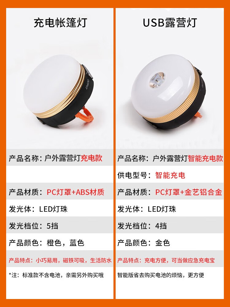 原始人(The Primitive) 帐篷灯露营灯led超亮照户外照明灯野营灯应急灯挂式地摊灯 电池款桔黄-暖光【不含电池】