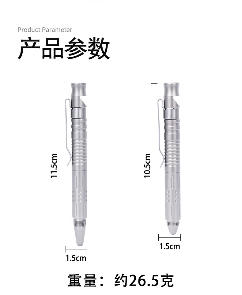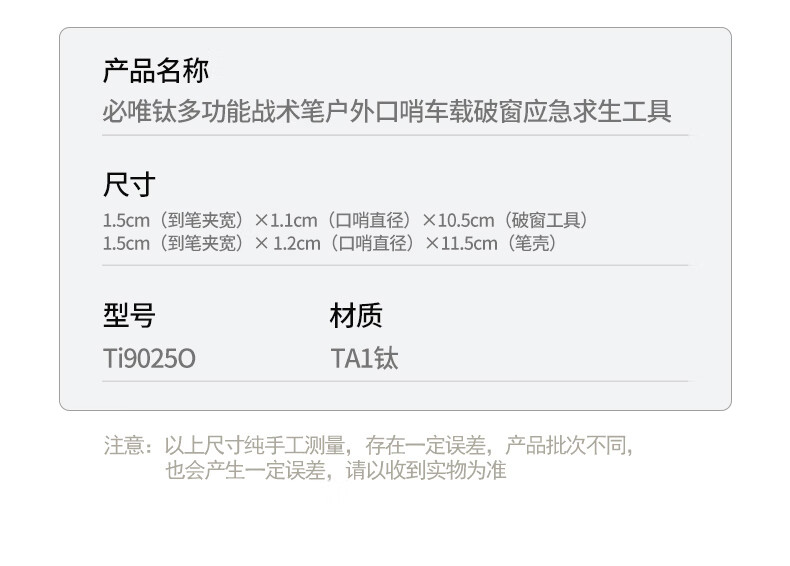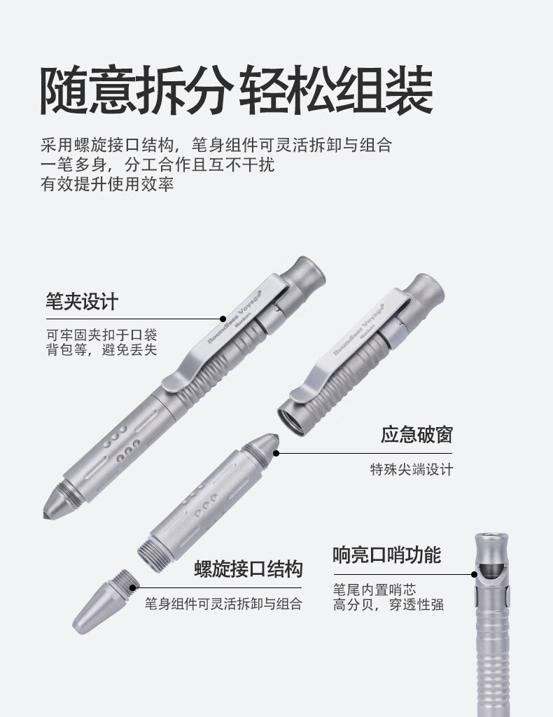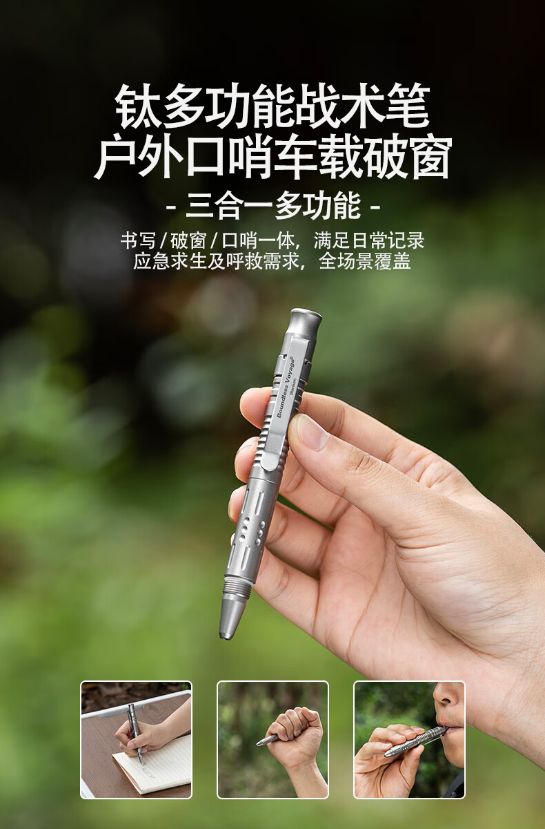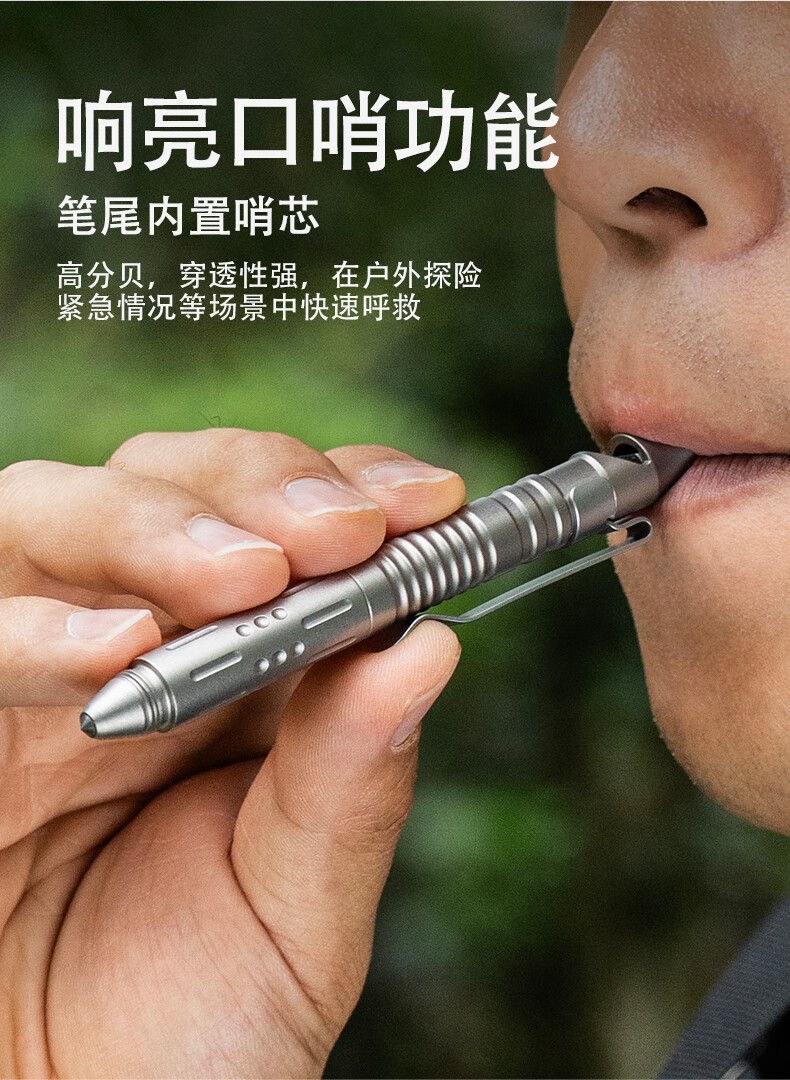 必唯纯钛户外求生口哨战术笔便携式随身防身工具多功能破窗器书写 Ti9025O