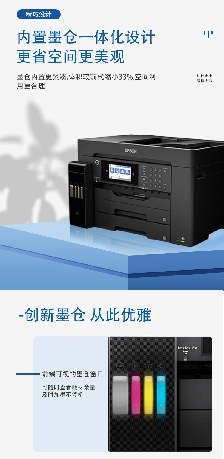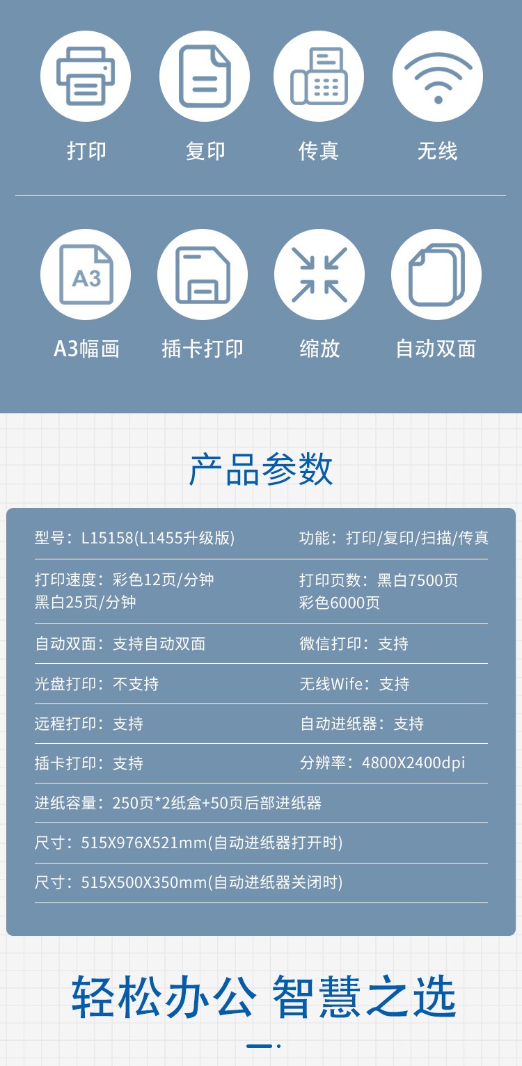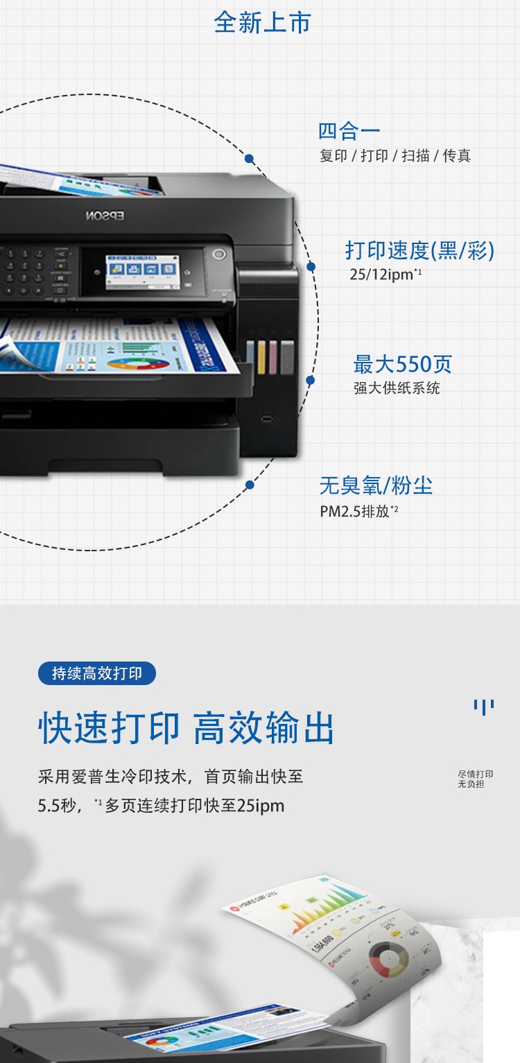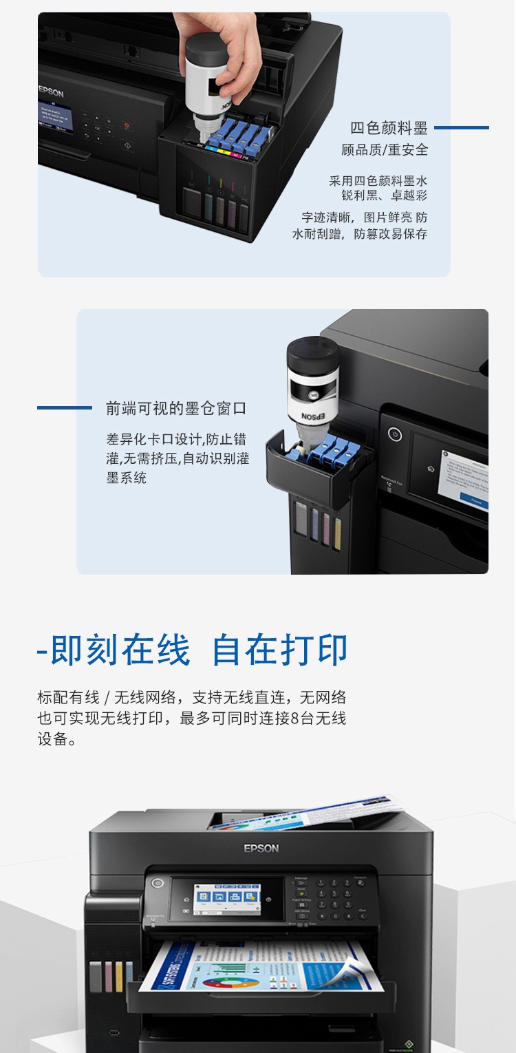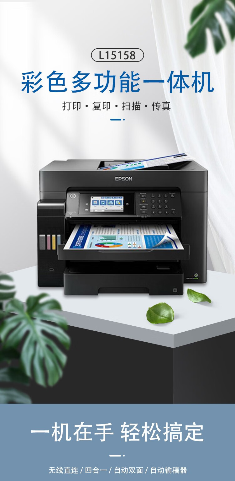 爱普生(EPSON) L15158 A3+ 彩色墨仓式数码复合机 有线/无线WIFI (打印、复印、扫描、传真)