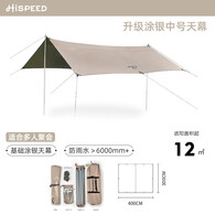 HISPEED黑胶天幕帐篷户外露营遮阳便携式防晒防雨大型遮阳棚 12㎡遮阳【浅咖方形涂银】