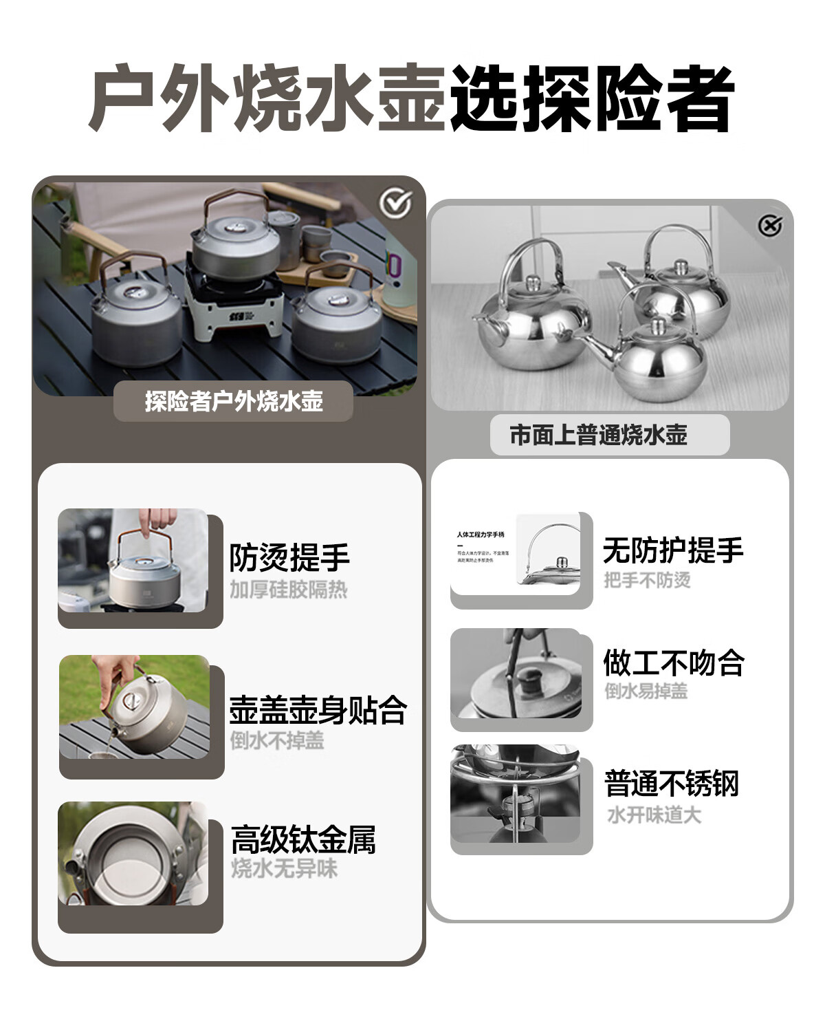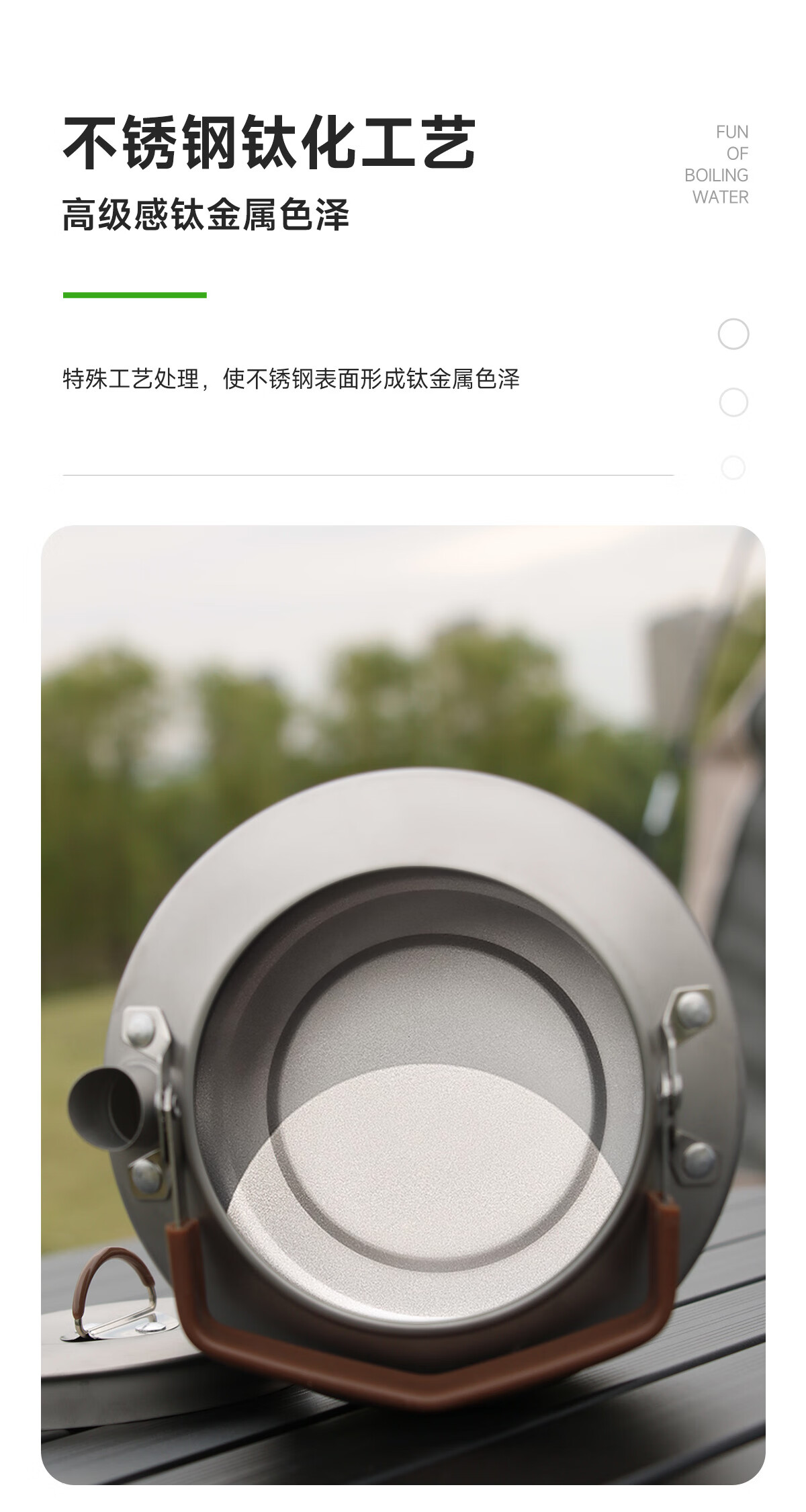 做工精细,包装完好,还有防烫设计,容量户外烧水足够用,316的材质,喝水有保障