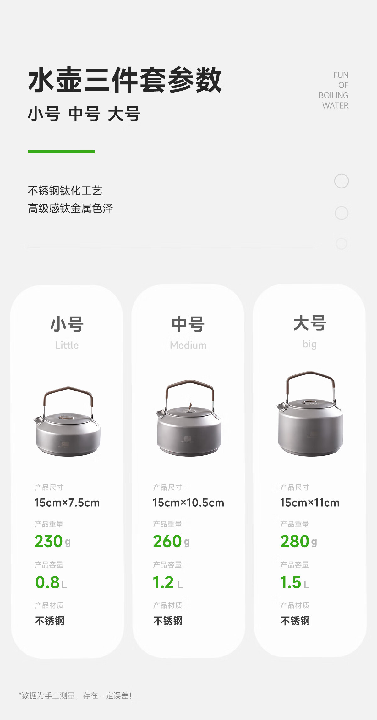 杯子非常满意,颜值高,带收纳硬包,使用方便,全金属材质不怕摔打,烧水壶的颜值也不错,只是没有1.2升的容量,还不如我原来那个1升的壶容量更大,其他都很满意了!
