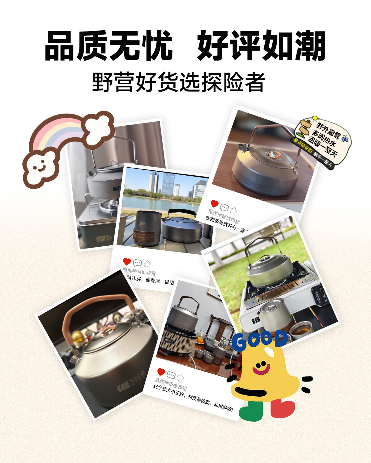 做工很好,看着也挺好,天冷了出去烧水喝,还暖和