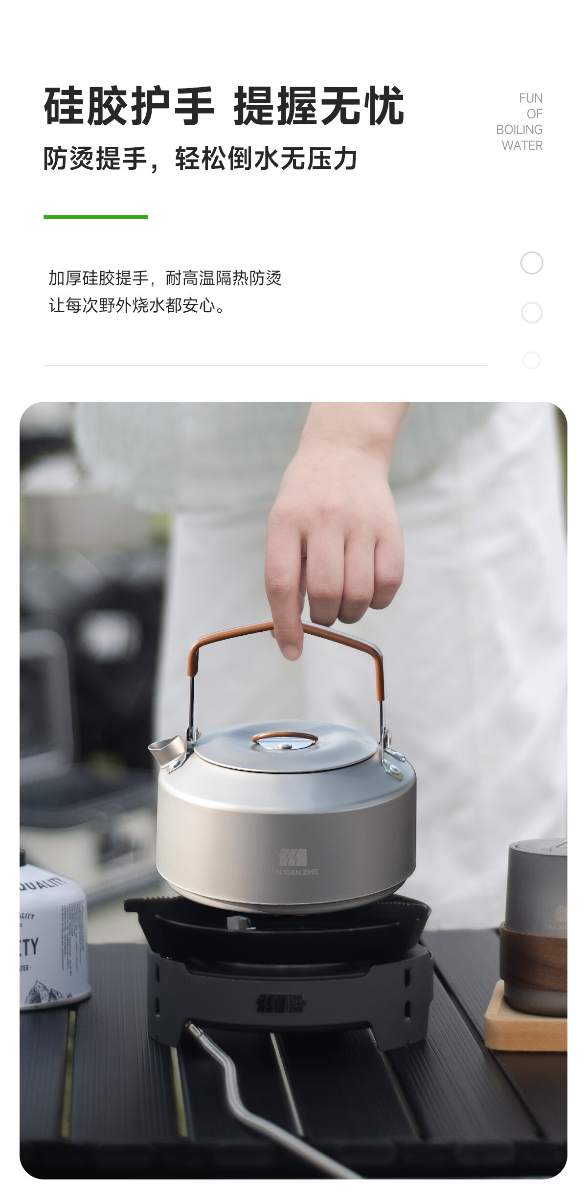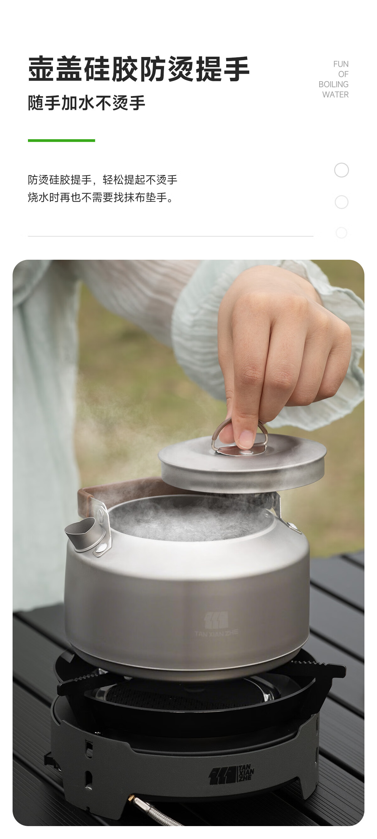 以前用的野餐烧水壶,烧水慢还容易有异味,这款完全没这些问题。它是食品级肽质材料,安全又耐用,导热超快,没一会儿水就烧开了。而且壶身设计很贴心,握感舒适,倒水时不烫手、不洒漏。折叠把手和小巧身形,收纳起来不占地方,随便往露营箱一塞就行。颜值还高,简约又时尚。有了它,在户外也能随时喝上热水,幸福感爆棚,必须~给大家!