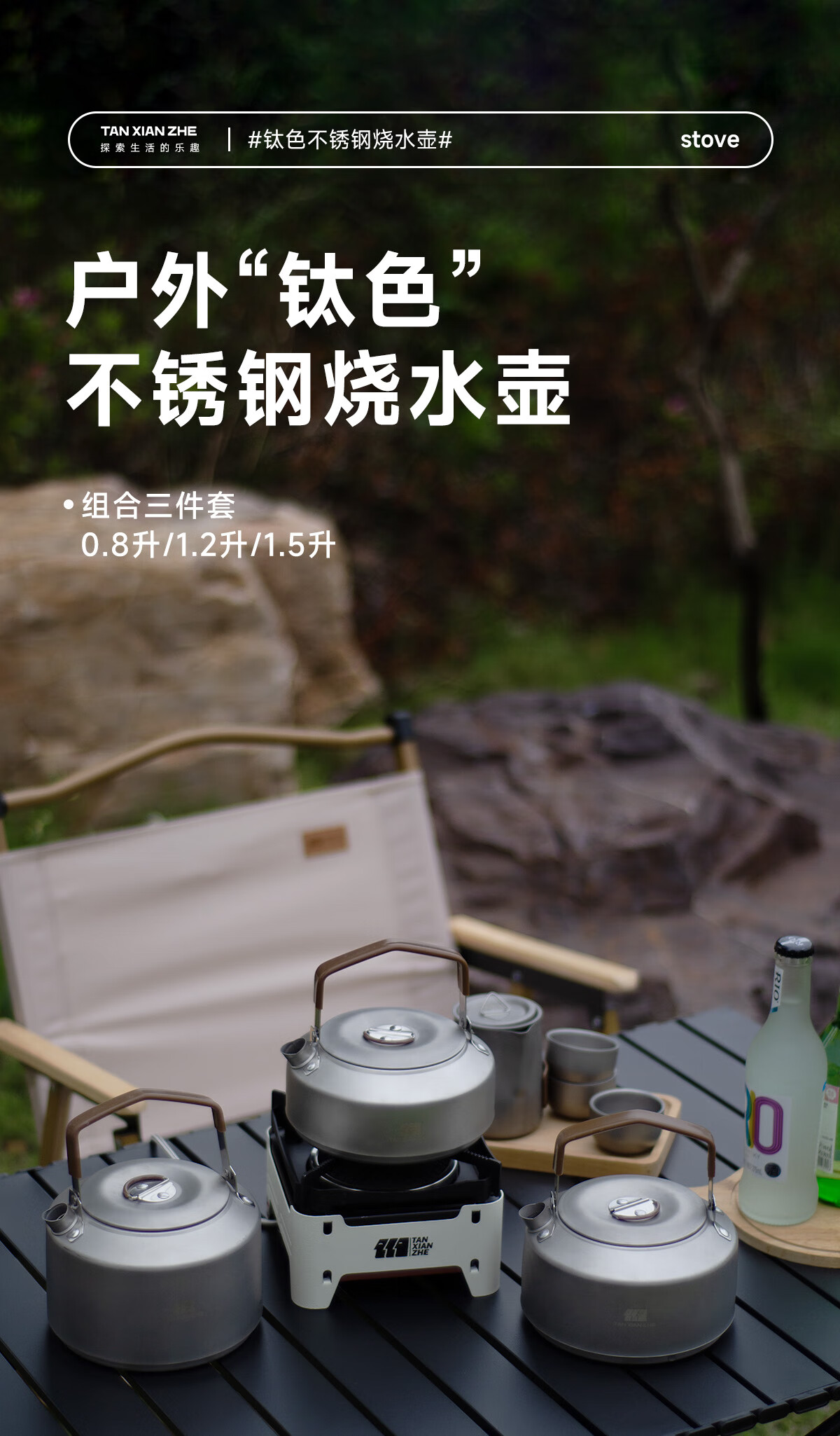 探险者(TAN XIAN ZHE)户外烧水壶露营烧水壶户外茶具钛壶钛杯钛茶具户外烧水喝茶一整套 【水壶茶具】1.2L水壶+旅行茶具