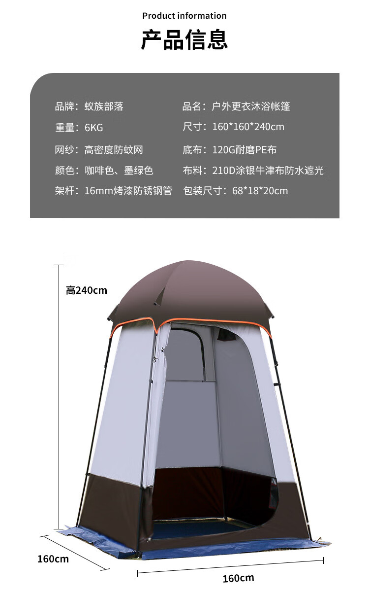 Guide Series 户外折叠便携更衣帐篷游泳换衣罩 淋浴洗澡帐篷移动户外厕所 步林山野G-02沐浴帐篷---卡其