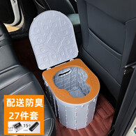 便携式车上车载马桶户外厕所折叠旅行防臭应急男女士大人儿童露营 印花灰有盖桔+保暖垫+12固化15袋