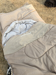 几十块钱买了一个单人的睡袋,是黑色的,然后拆开之后稍微有一点点的味道,晾一晾太阳底下晒一晒就还好,质量还是可以的,不30块钱一个睡袋的价格还是可以接受的。