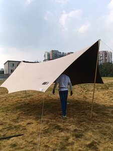 本以为搭建很有难度,试了一下比封顶的那种帐篷简单多了,两个人一会就搭建完成了。在涂银和黑胶之间纠结了一下,最后选了黑胶,撑起来的瞬间立马凉快了。质量也很好,物美价廉值得入手。