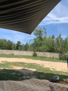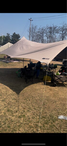 终于买了天幕,不用天天找阴凉了。 地钉一拿就很有质感那种。高度也高。 很好搭。我老公一个人完全可以。 孩子们最喜欢出来露营了。原始人天幕YYDS
