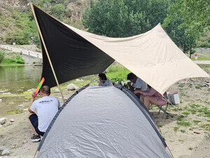 天幕很大,可以容纳好几个人,而且价格实惠,质量好,黑胶的也防晒,推荐大家,很喜欢