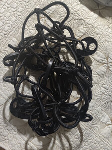 松紧绳比想象的粗很多,说是3倍拉伸长度。塑料钩也比较结实。之前考虑买铁钩,又怕把露营车铁杆刮花了。其实塑料的就够用。