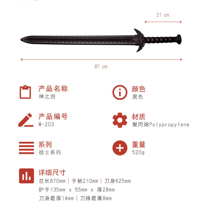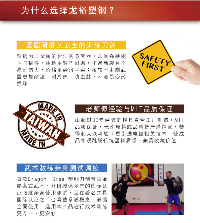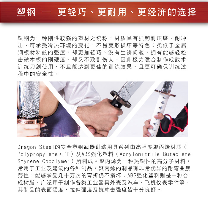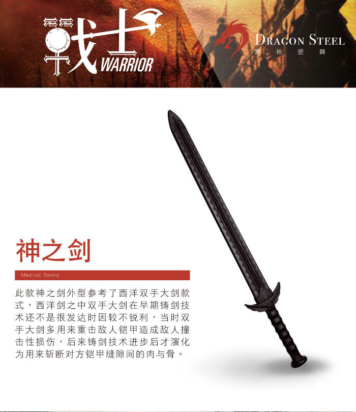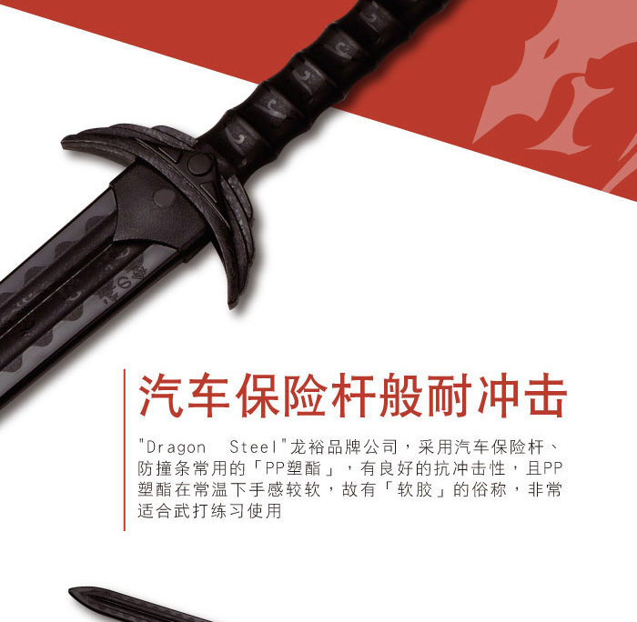COLD STEEL龙裕塑钢Dragon Steel 武术训硬塑料打不断cosplay刀剑神之剑 黑