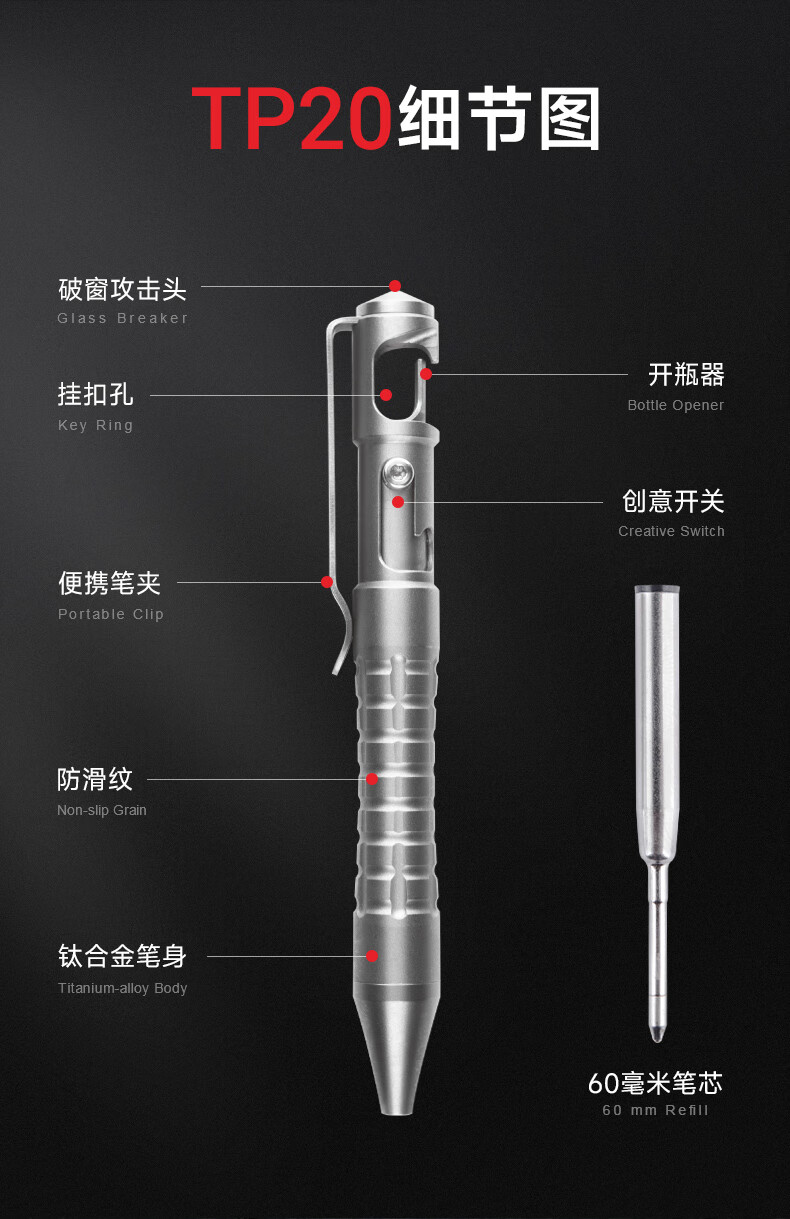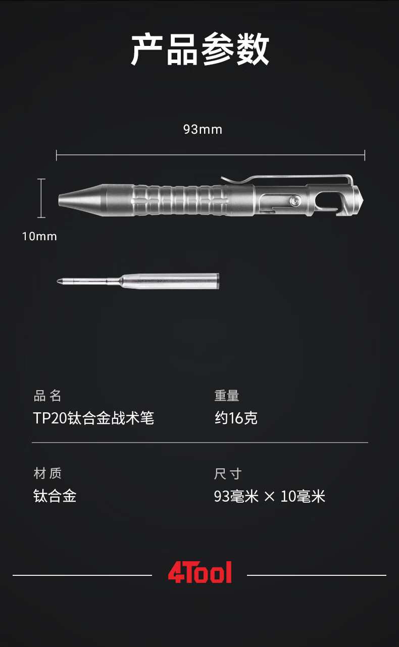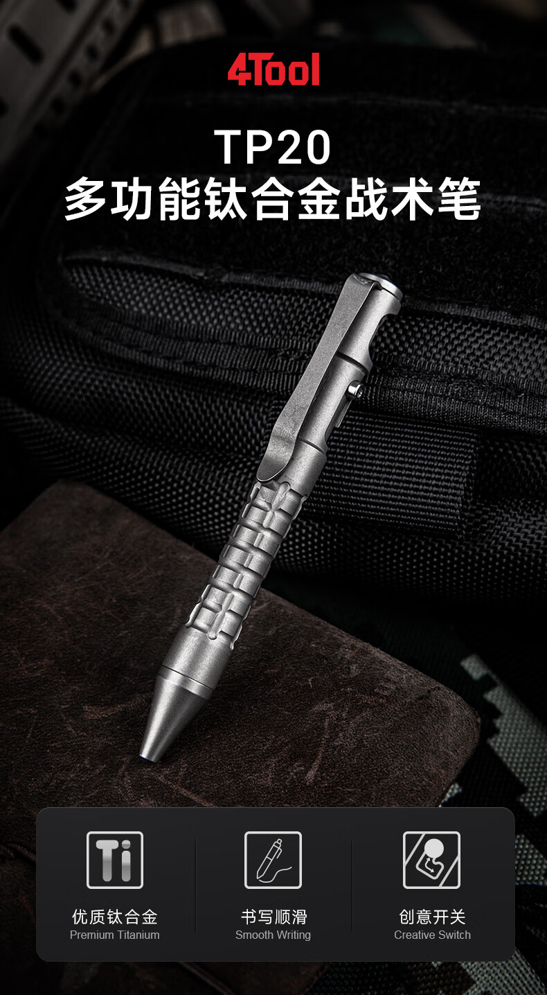 纳丽德(NEXTORCH)4Tool系列TP20钛合金战术笔多功能便携签字笔车载应急破窗工具 TP20钛合金战术笔