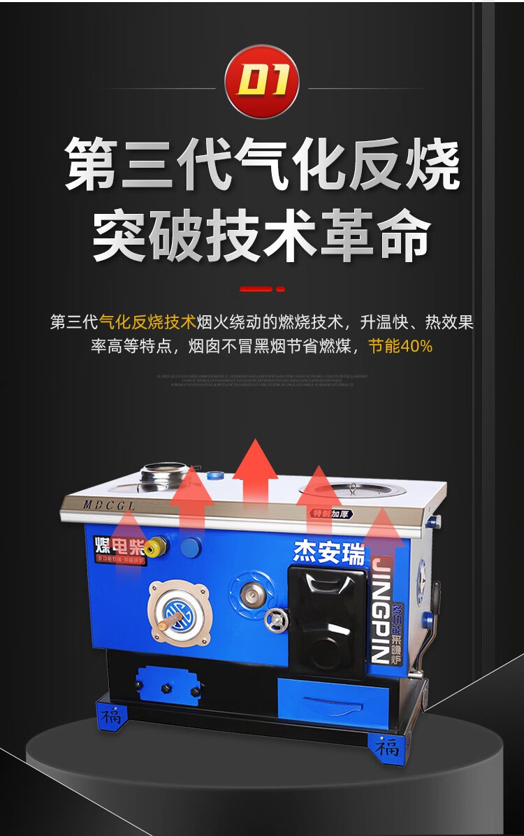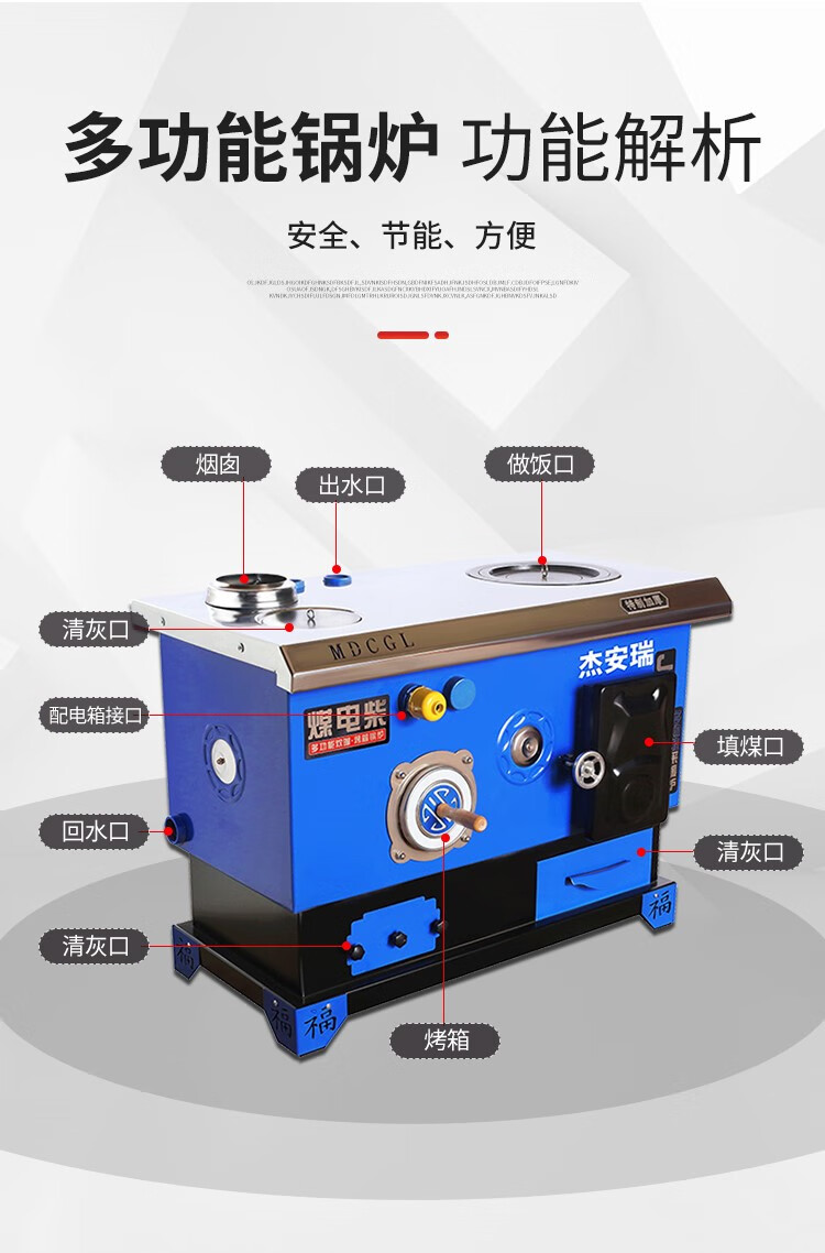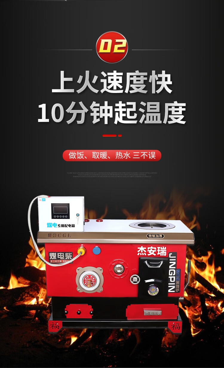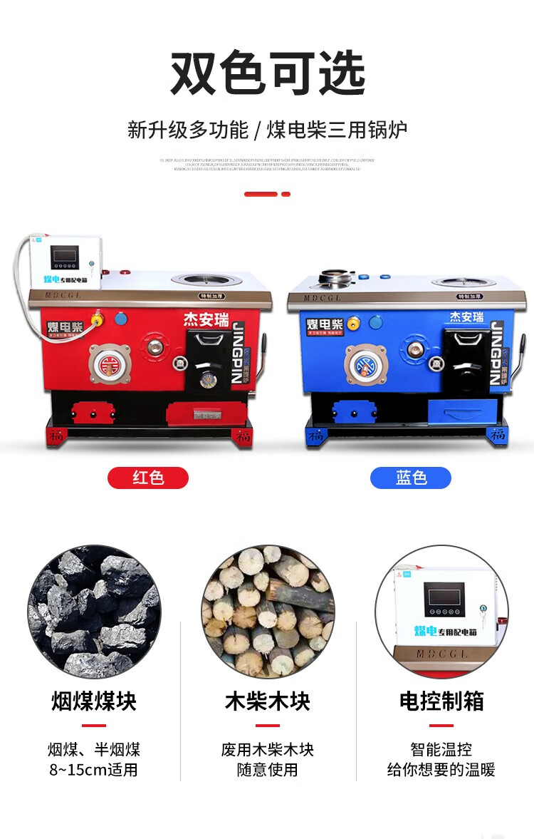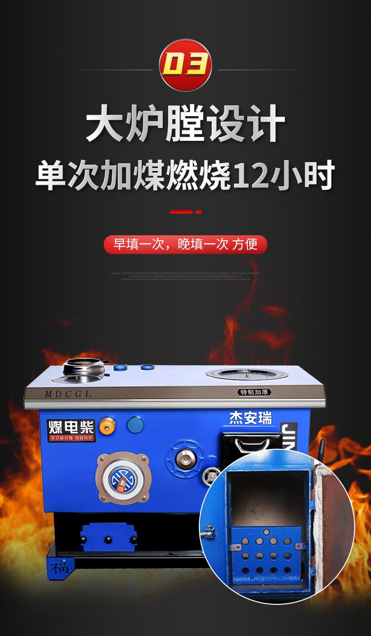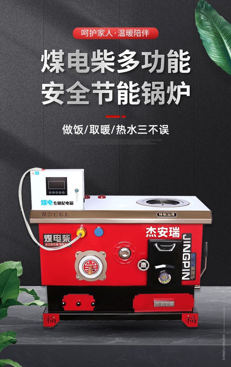 煤电柴多功能网红锅炉智能懒汉锅炉炊事烤箱炉节能取暖炉地暖两用 煤柴220#加厚型