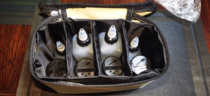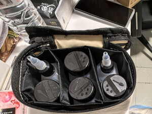 两大两小液体瓶,4个干粉瓶,基本的调味料都带得差不多了,收纳包大小刚好合适。液体瓶嘴有锁紧功能,拧紧了不会漏液,放心携带。