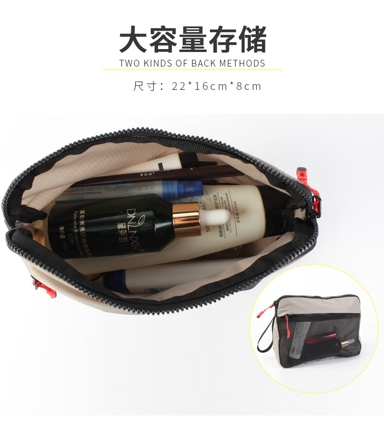 杉木山装收纳包杂物收纳袋小袋拉链防水洗漱包大容量耐磨超轻耐用 灰色-柔滑面料 无规格