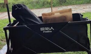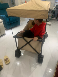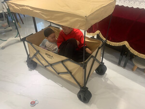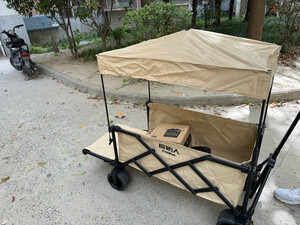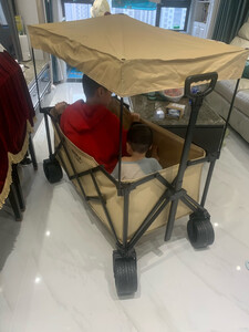 露营车收到了,非常方便,加了遮阳棚之后小孩可以坐在里面,不被太阳晒,宝贝睡着了躺在里面拉着可太方便了,陆续买了好多露营装备,装在露营车里完全没问题