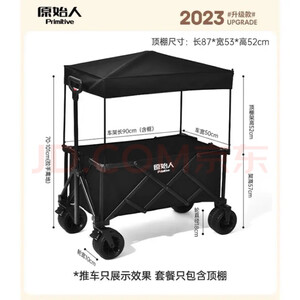 原始人露营推车户外营地拖车超大可折叠手推野餐野营手拉车顶棚 加大黑色顶棚(只含顶棚)