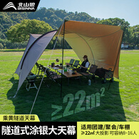 北山狼 户外露营防雨防晒大空间隧道式牛津布 双层银胶天幕帐篷 咖啡色