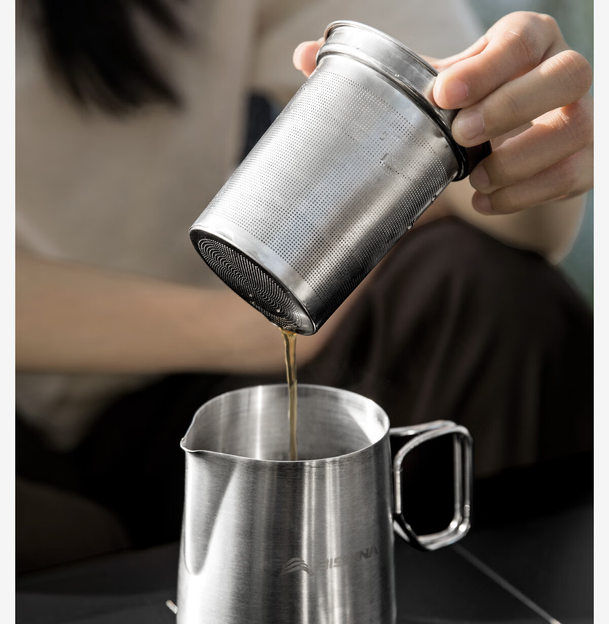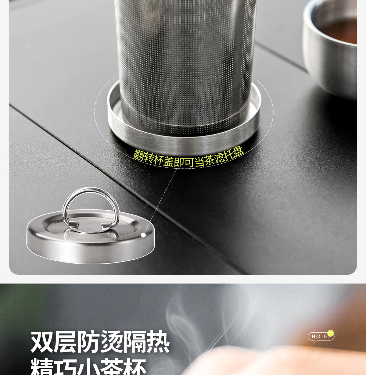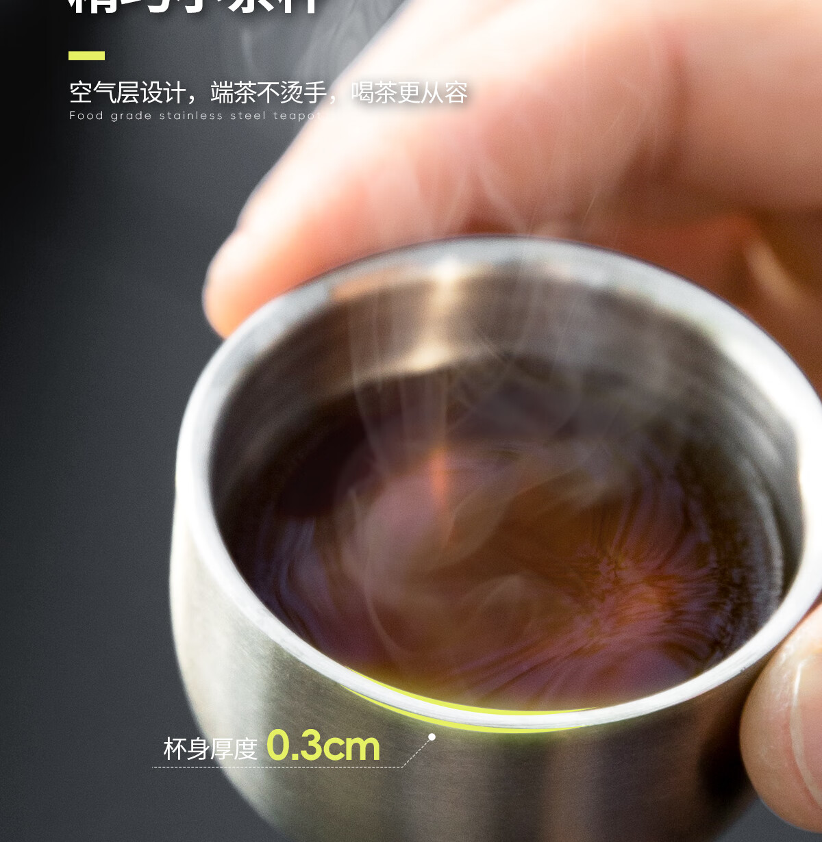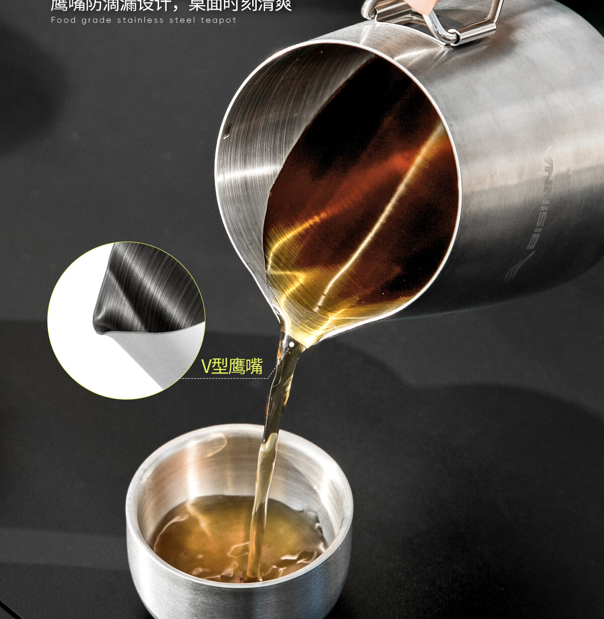 北山狼 不锈钢户外茶具便携功夫泡茶器隔热防烫旅行煮茶套装 0.3L茶壶+茶杯*3【食品级不锈钢