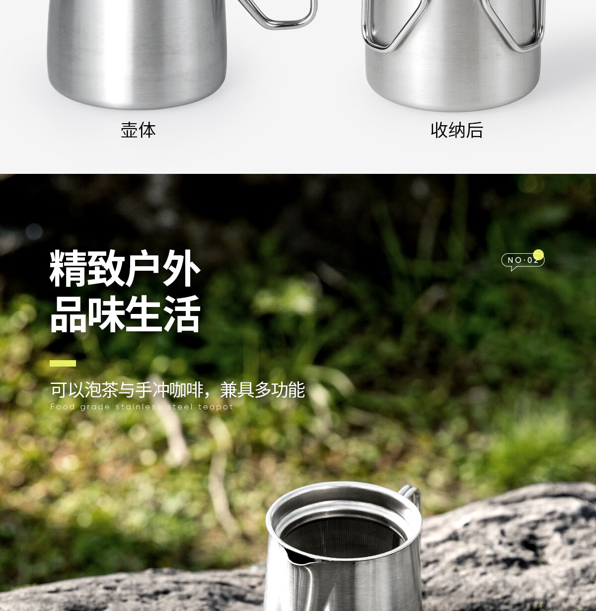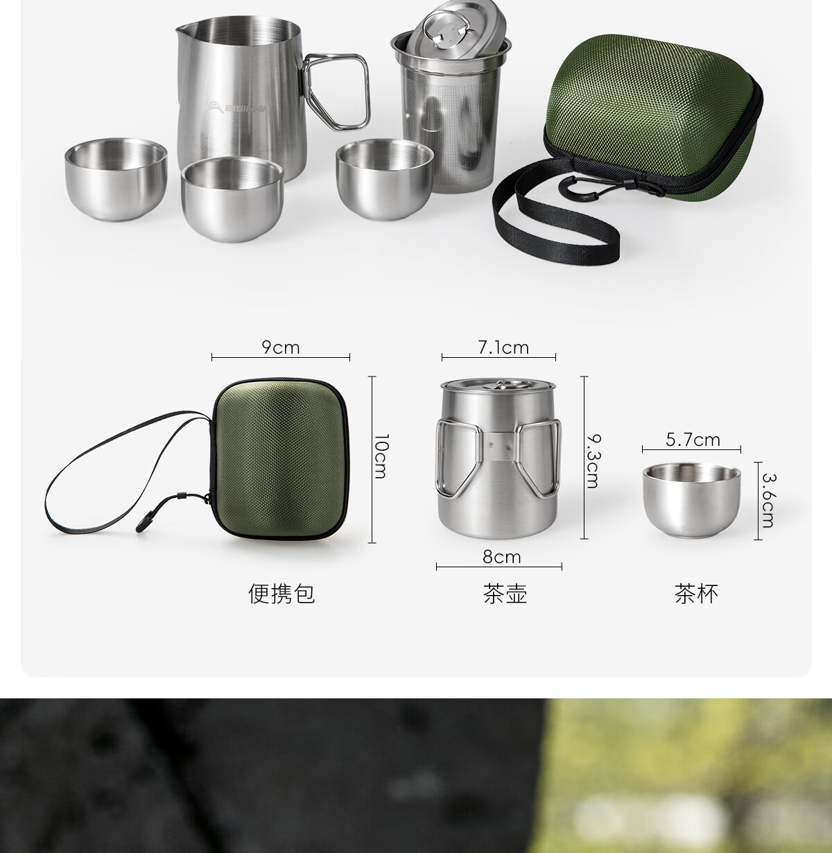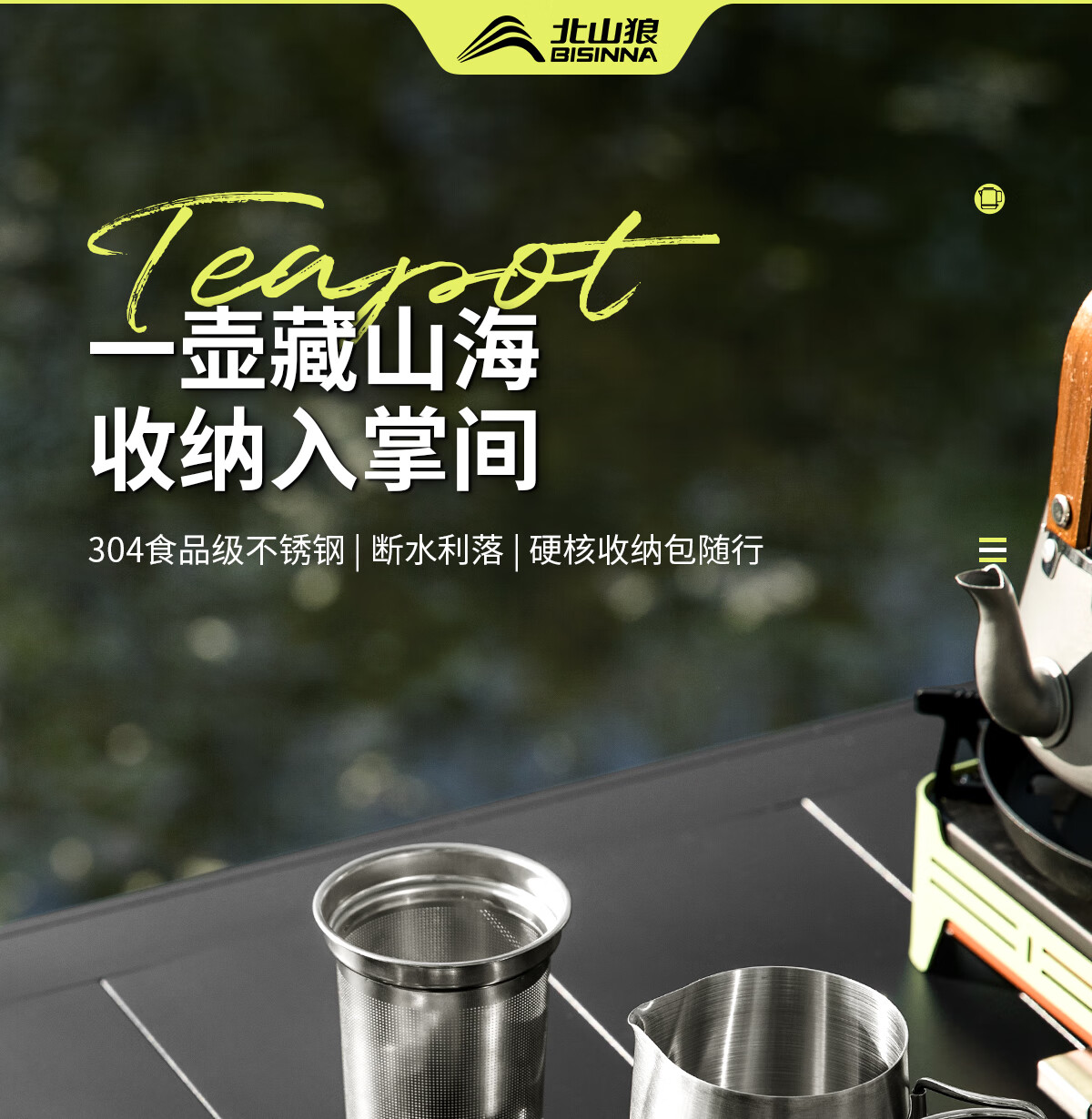 北山狼 户外便携不锈钢功夫茶具泡茶器旅行茶壶露营煮茶收纳专用套装 0.3L茶壶+茶杯*3【食品级不锈钢材质】 适用场景:差旅,露营