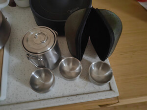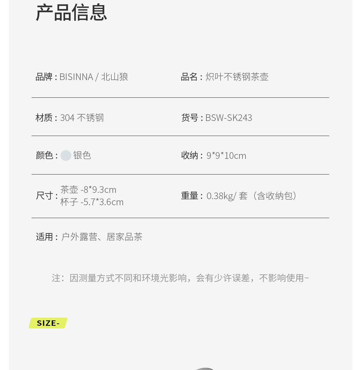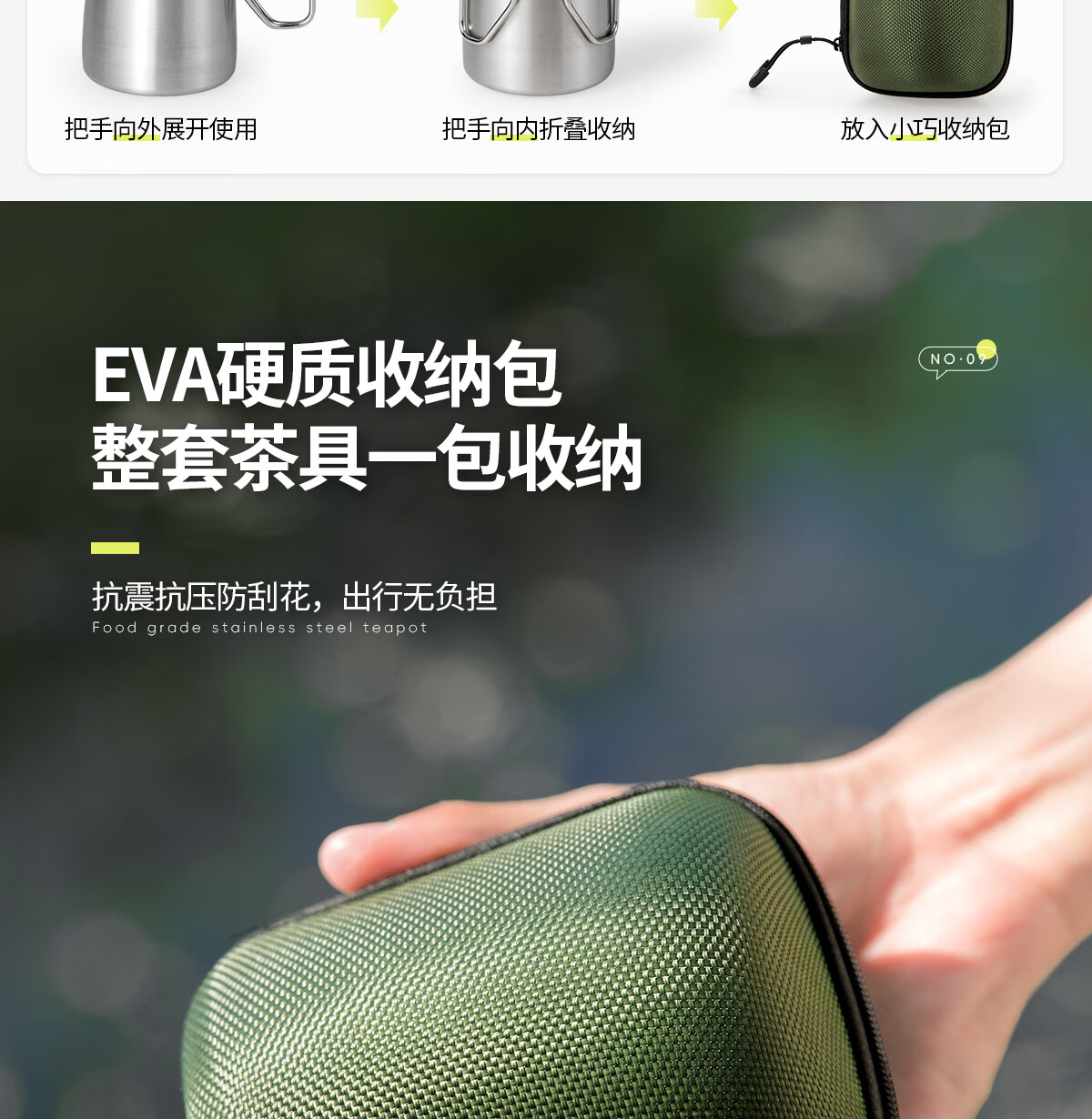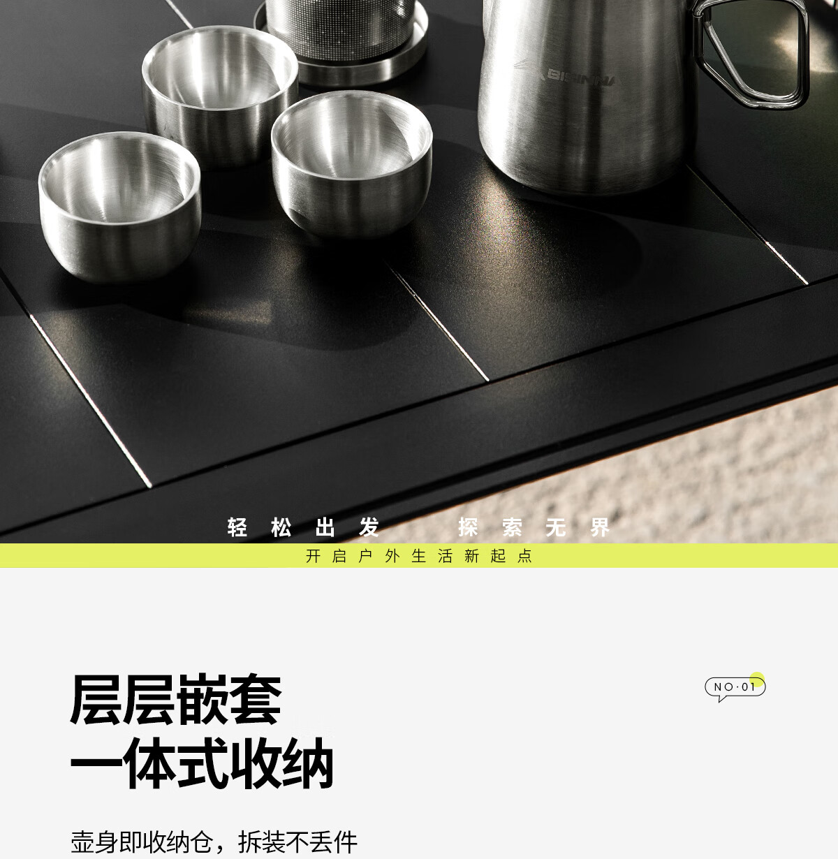 北山狼 户外便携不锈钢功夫茶具泡茶器旅行茶壶露营煮茶收纳专用套装 0.3L茶壶+茶杯*3【食品级不锈钢材质】 适用场景:差旅,露营
